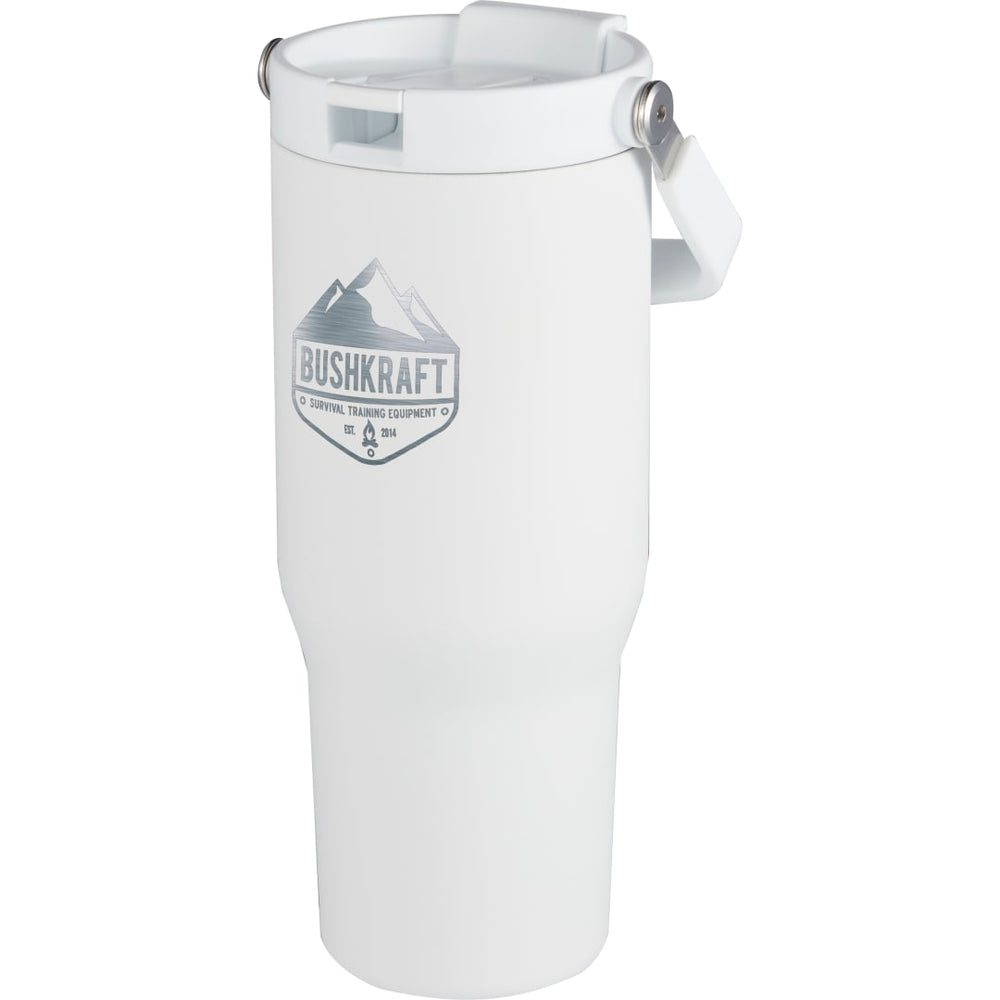 Carnival 30oz Tumbler is designed to be fully function for both hot and cold beverages. Its built-in flip straw offers convenient, effortless sipping. Snap the straw shut and you can chug from the flap-open spout! The integrated metal handle provides on-the-go convenience and makes the Carnival the ultimate travel companion. Durable, double-wall stainless steel vacuum construction with copper insulation allows your beverage to stay cold for up to 48 hours and hot for 12 hours. The construction also prevents condensation on the outside of the tumbler. On-trend, durable powder coating. Screw-on, spill resistant lid with integrated straw and flap-seal closure. Wide opening for easy filling and pouring perfect for ice cubes. Fits most standard car cup holders. 30-oz capacity. Note: Drinking hot beverages with the straw is not recommended. Remove lid to allow beverage to cool.“Close the Flap seal or Sipping nozzle properly when switching to another way of drinking with this mug.” Hand wash