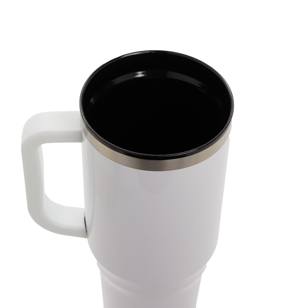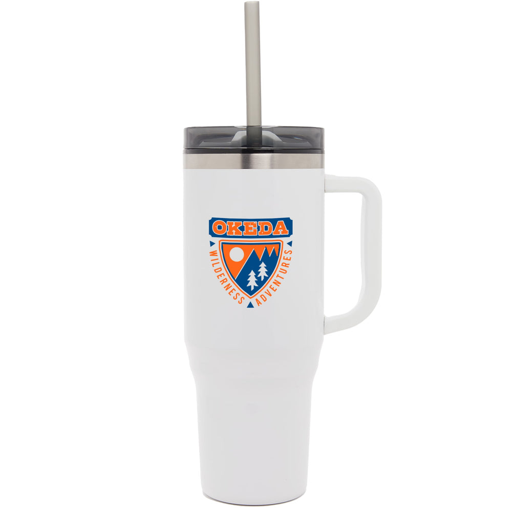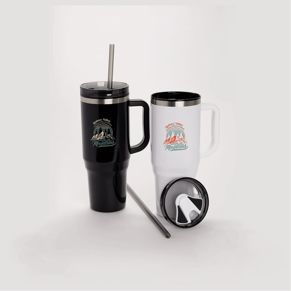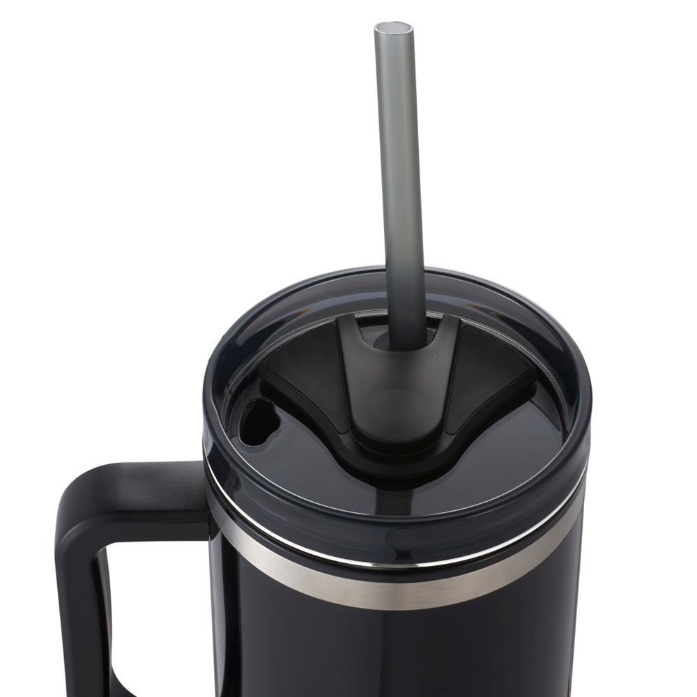 The Bullet Thor 40 oz Eco-Friendly Straw Tumbler features durable double-wall construction to keep your beverages hot or cold in any environment. Food-grade recycled straw included for easy reuse daily. The Thor has a 40 ounce capacity for fewer refills and features a slim base that fits into most cupholders, comfortable carry handle, and splash-proof press-on lid with two openings and a swivel closure, friendly to both Sippers and Chuggers! Hand-wash only.