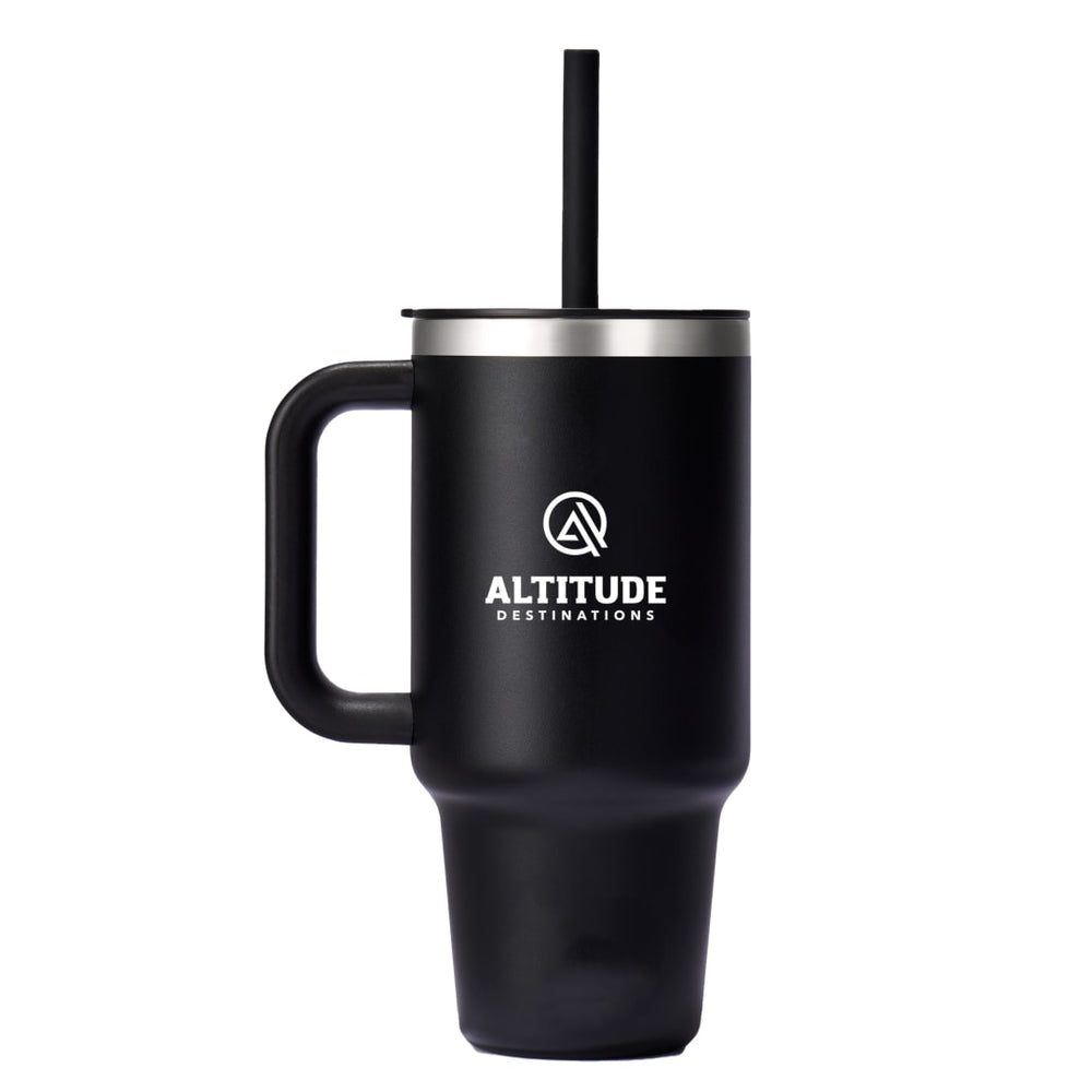 The new 32oz Travel Tumbler is here to hydrate more and refill less. A very comfortable, extremely durable handle takes it to the next level, and the large size can go anywhere, even fitting most cupholders. TempShield® double-wall insulation ensures cold stays cold, and the flexible straw is easy to sip any which way, The Press-In Straw Lid is Snug, secure, splash-resistant. The Color Last™ powder coat is durable, sweat-free. Made with 18/8 pro-grade stainless steel for durability, pure taste and no flavor transfer. BPA-Free Hand wash only