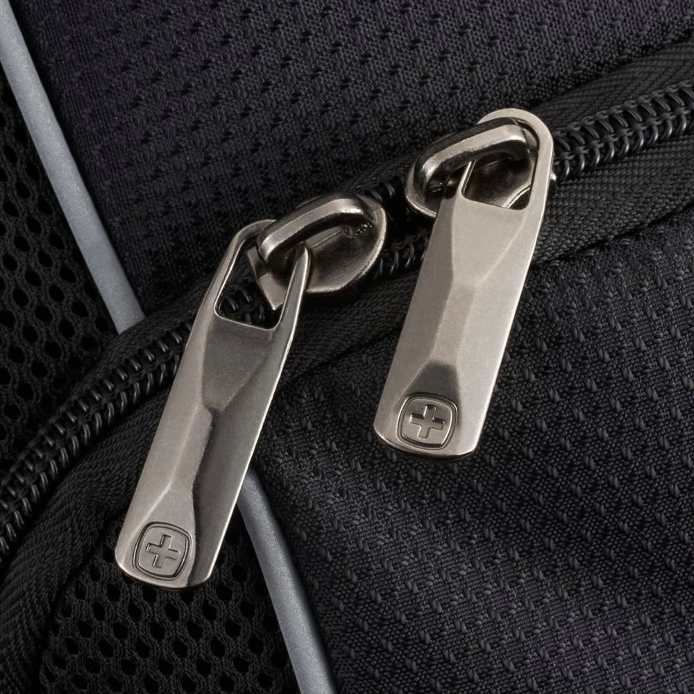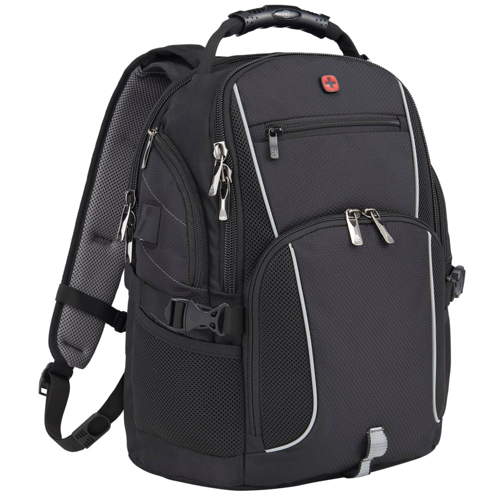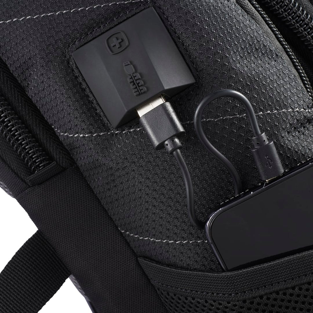 The Wenger Pro II Recycled 17" Computer Backpack combines style and luxury with sustainability. Made from eco-friendly RPET, this backpack has it all: a 17” computer sleeve, dedicated USB port with cable compartment, adjustable buckle compression straps, two side mesh water bottle pockets and a dedicated phone pocket on the shoulder strap. Organize your valuables in the easy-access, lined front pocket, the zippered mesh pocket on the interior front wall, front organizational pocket, back pocket with RFID protection or in the large zippered main compartment. This backpack features Wenger’s Airflow moisture-wicking mesh, shock absorbent backpack strap and an adjustable chest strap. Through a partnership with 1% For The Planet, one percent of sales of all EcoSmart® products are donated to environmental nonprofits.