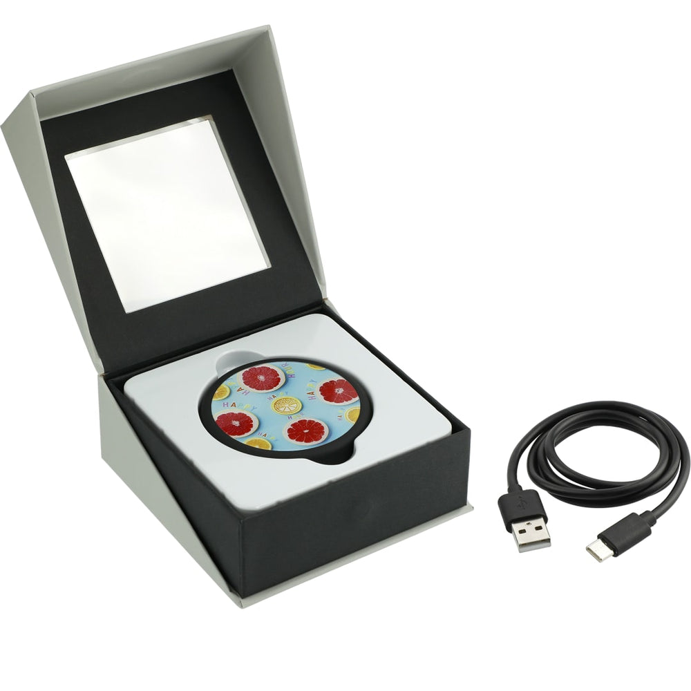 The Looking Glass Wireless Charging Pad lets you charge your smartphone without the cables. The tempered glass on the surface offers a vivid, customized look. It supports 5W wireless charging for most newer devices. To charge a phone without wireless technology, an external Qi-standard wireless charging receiver or receiver case is required. Works with most plastic phone cases on. Includes a 39-inch USB-A to Type-C charging cable. Packaged in a premium gift box.