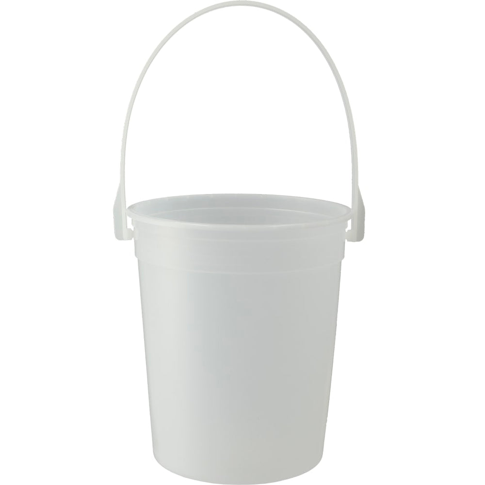 The 32oz Pail with Handle is great for a day at the beach or playground. The included handle makes it easy to carry. The top diameter measures 4.6" and the bottom diameter measures 3.5".