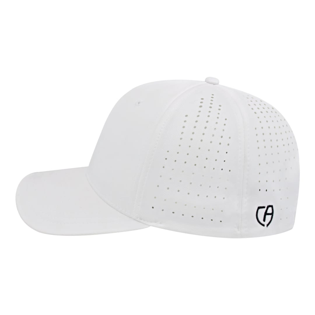 The Cap America Flexfit 110 Performance Snap Back Cap is a mid-profile, six panel structured cap made using a poly/sport blend fabric with perforated sides and back. This cap features a shapeable pre-curved visor, UV protection, moisture wicking properties, a 110 Technology® sweatband, and an adjustable plastic snap back closure.