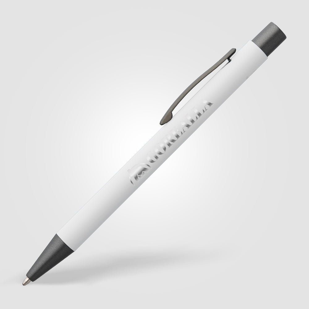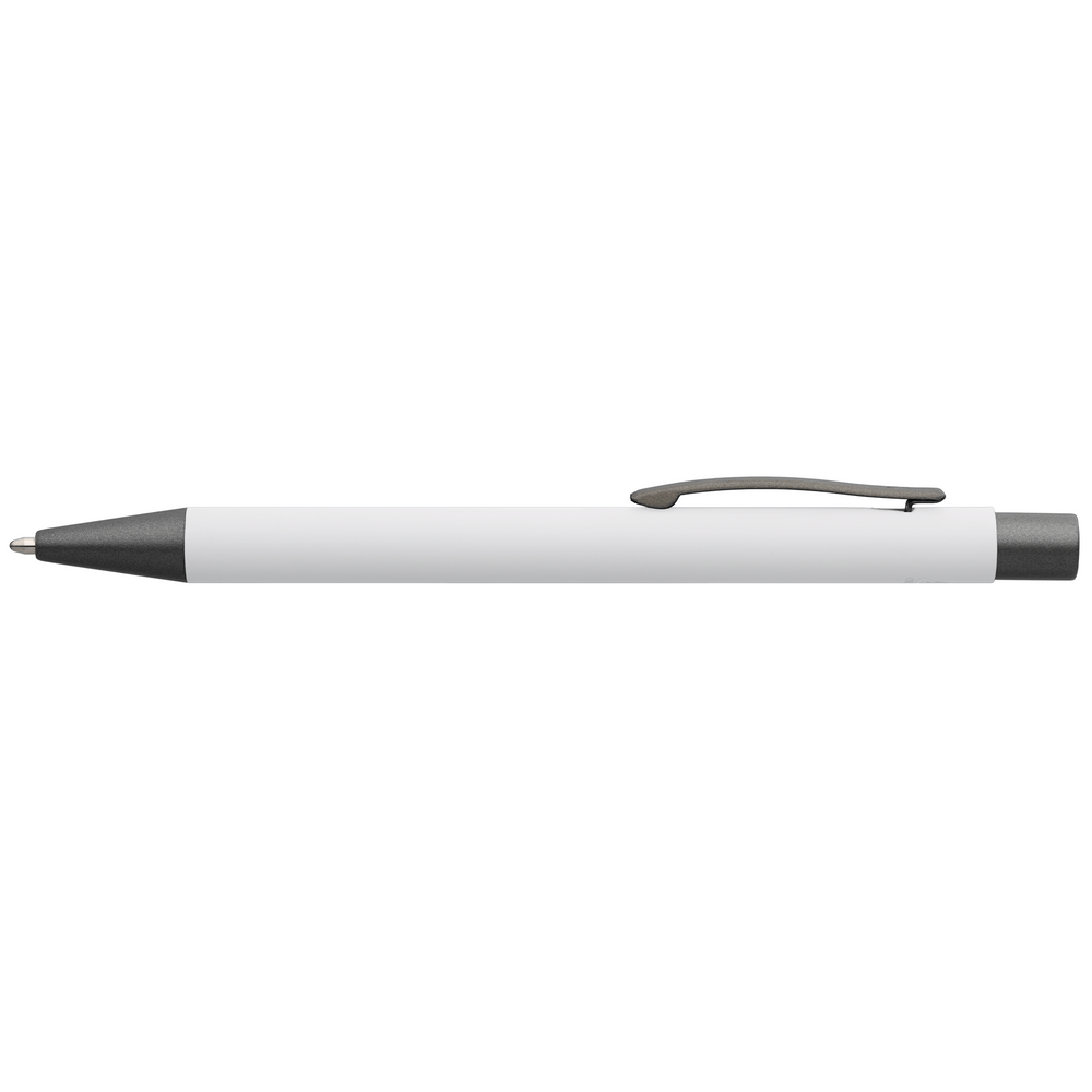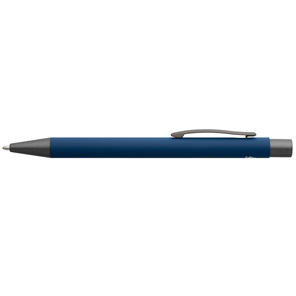 The Bowie Recycled Aluminum Softy Pen features a 100% recycled aluminum barrel with a rubberized finish and silver mirror accents, giving it a stylish, modern look. The sleek design is enhanced by a gunmetal-painted RABS plastic plunger and tip, with a laser-engraved recycled symbol subtly placed opposite the clip. It’s equipped with an FMA jumbo slim refill, offering a smooth 1800m write-out with a 1.2mm tip for a reliable, consistent writing experience.