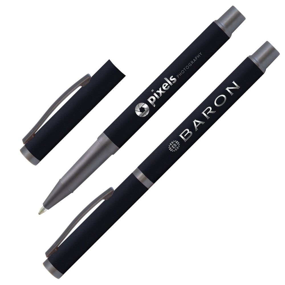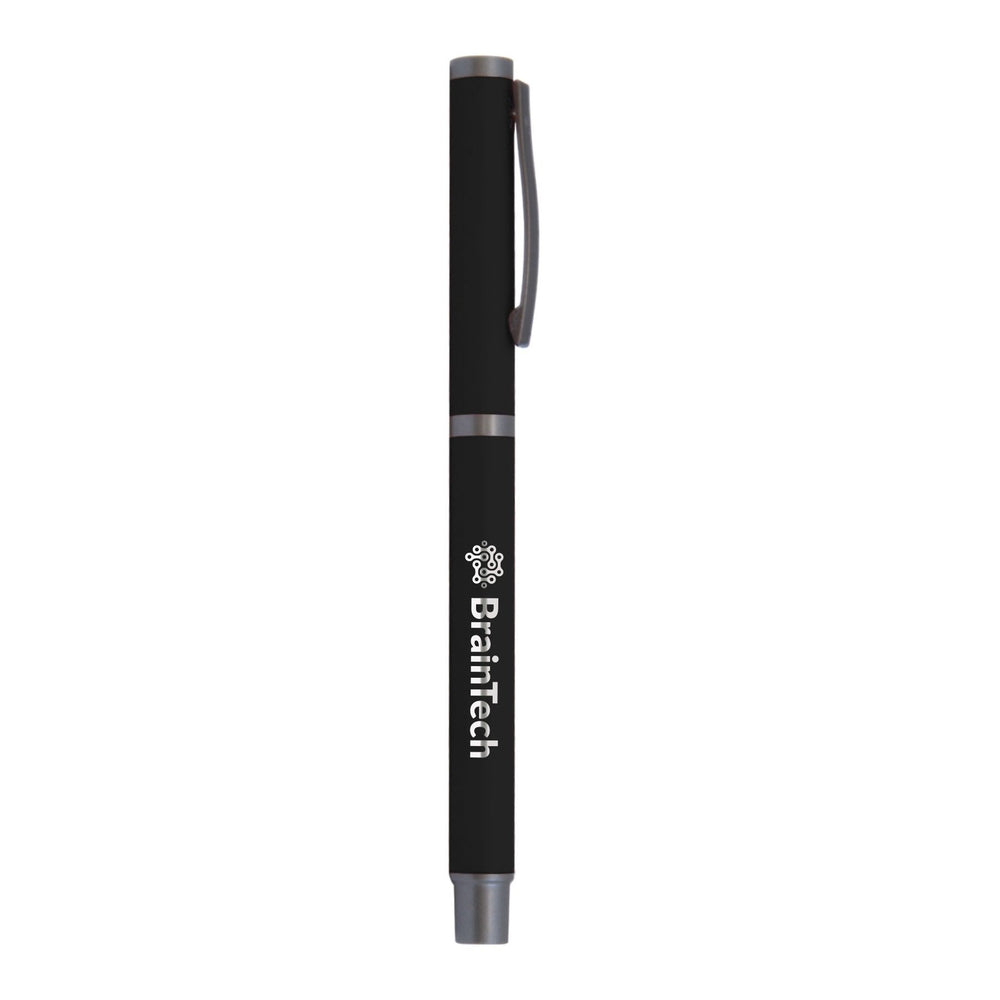 A soft-touch rubberized finish with gunmetal accents modernizes this classic, capped metal pen. The Bowie Rollerball pen delivers a smooth, fluid writing experience, and is designed to impress.