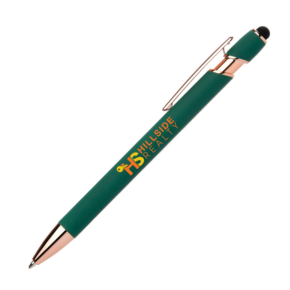 With super-smooth Gel writing ink, the Ellipse Softy Rose Gold Gel features our luxurious soft-touch rubberized finish. Rose gold accents, trim and clip create a distinctive look. Choose from a variety of vibrant barrel, grip and matching stylus colors.