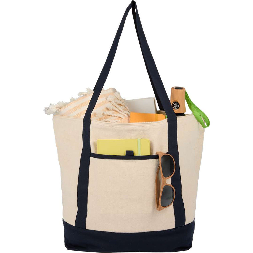 The Isle Organic Cotton Tote is made from 8oz organic Cotton.It features a zippered main compartment and open front pocket hold all of your essential with double 11'' drop handles. Through a partnership with 1% For The Planet, one percent of sales of all EcoSmart® products will be donated to environmental nonprofits.