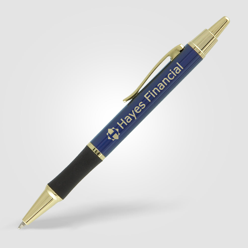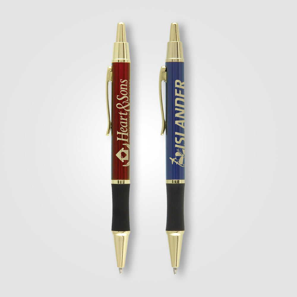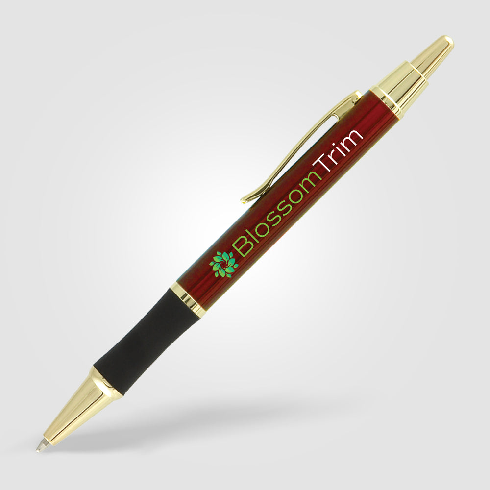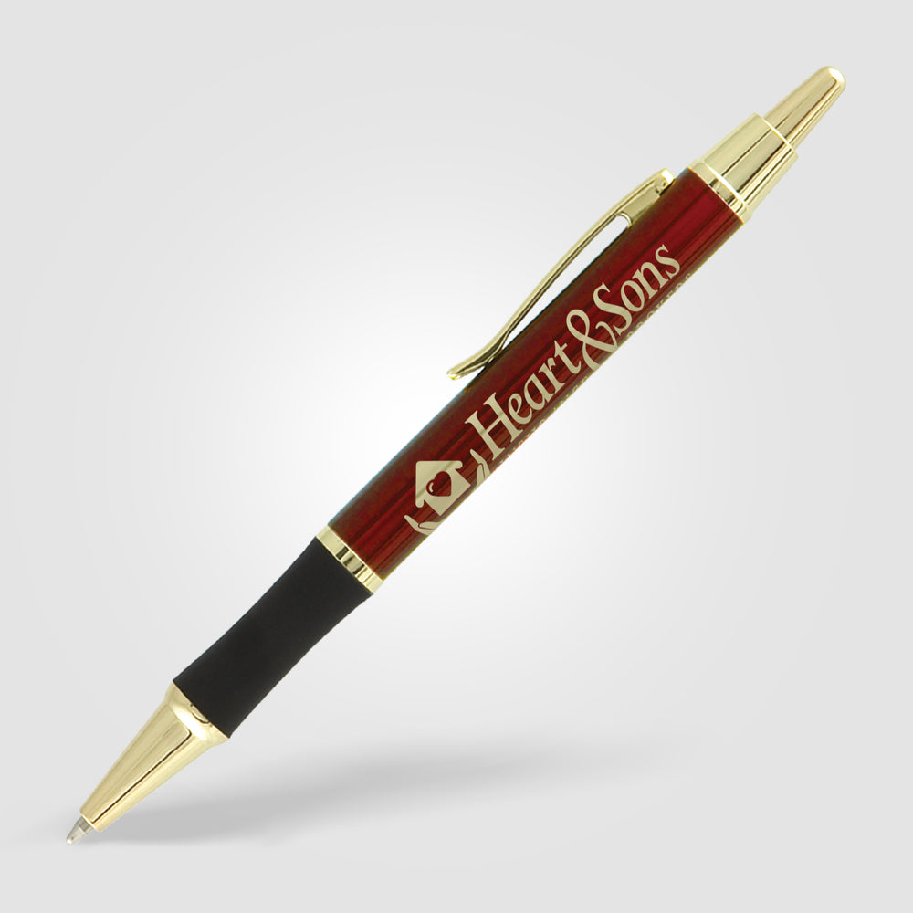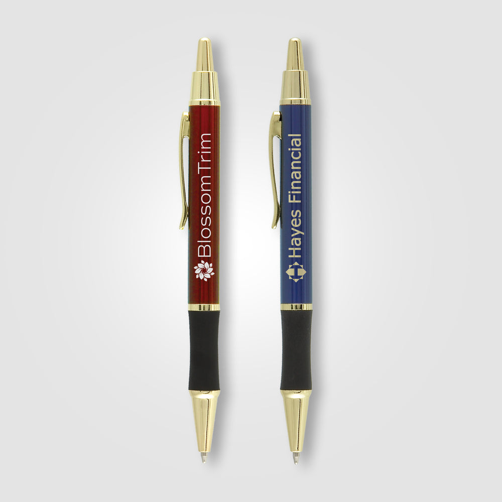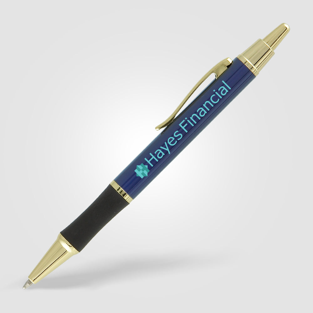 Stay golden with our Matrix pen featuring lacquer barrel, polished gold trim with accent ring, black rubber grip and your logo.