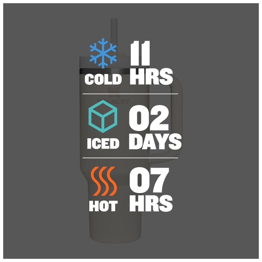 Constructed of recycled stainless steel for sustainable sipping, the 40 oz Quencher H2.0 offers maximum hydration with fewer refills. Commuting, studio workouts, day trips or your front porch—you’ll want this tumbler by your side. Thanks to Stanley’s vacuum insulation, your water will stay ice-cold, hour after hour. The advanced FlowState™ lid features a rotating cover with three positions: a straw opening designed to resist splashes while holding the reusable straw in place, a drink opening, and a full-cover top. The ergonomic handle includes comfort-grip inserts for easy carrying, and the narrow base fits just about any car cup holder. Hand Wash Only.