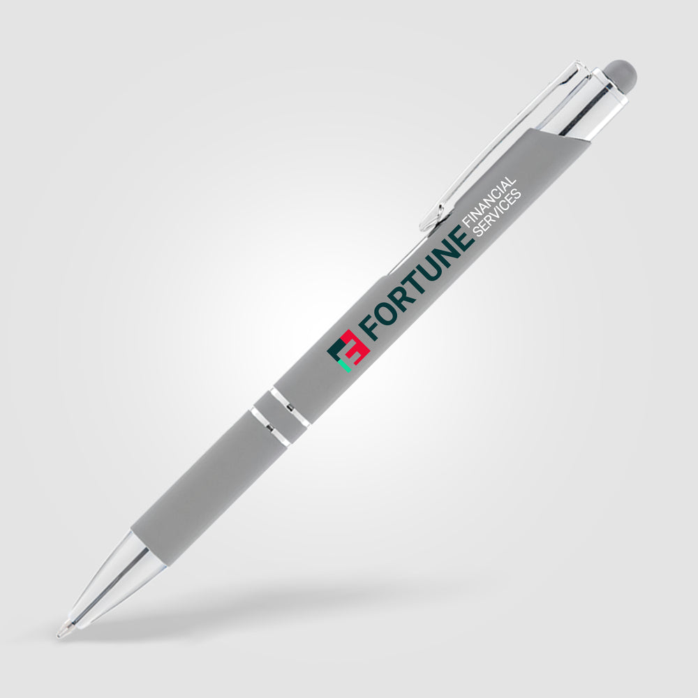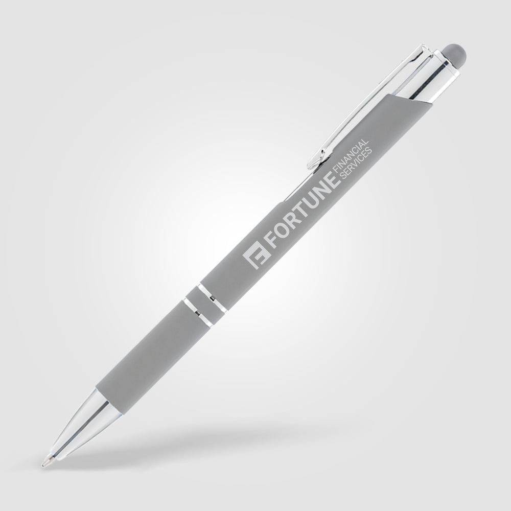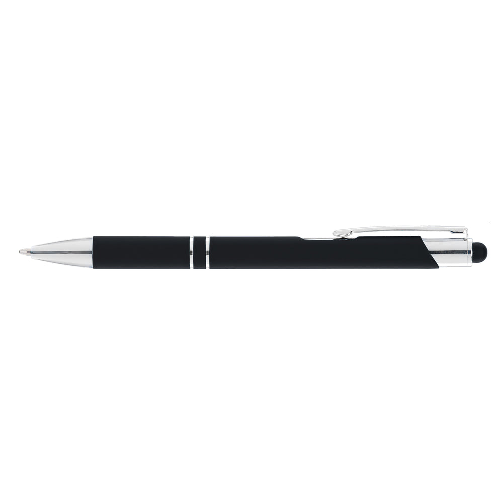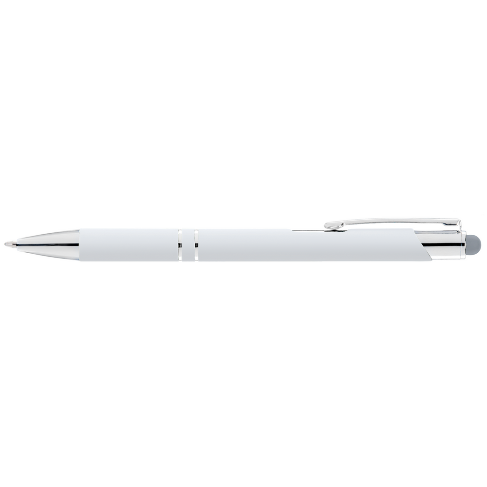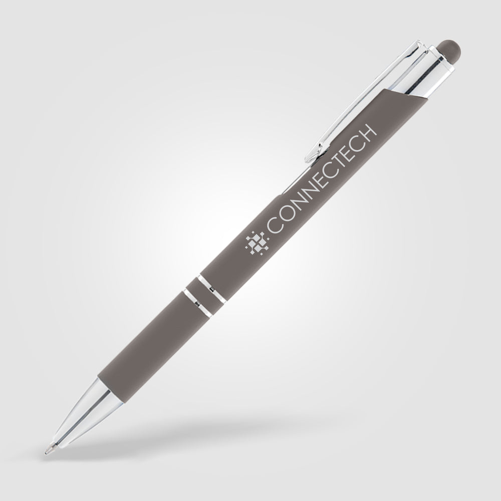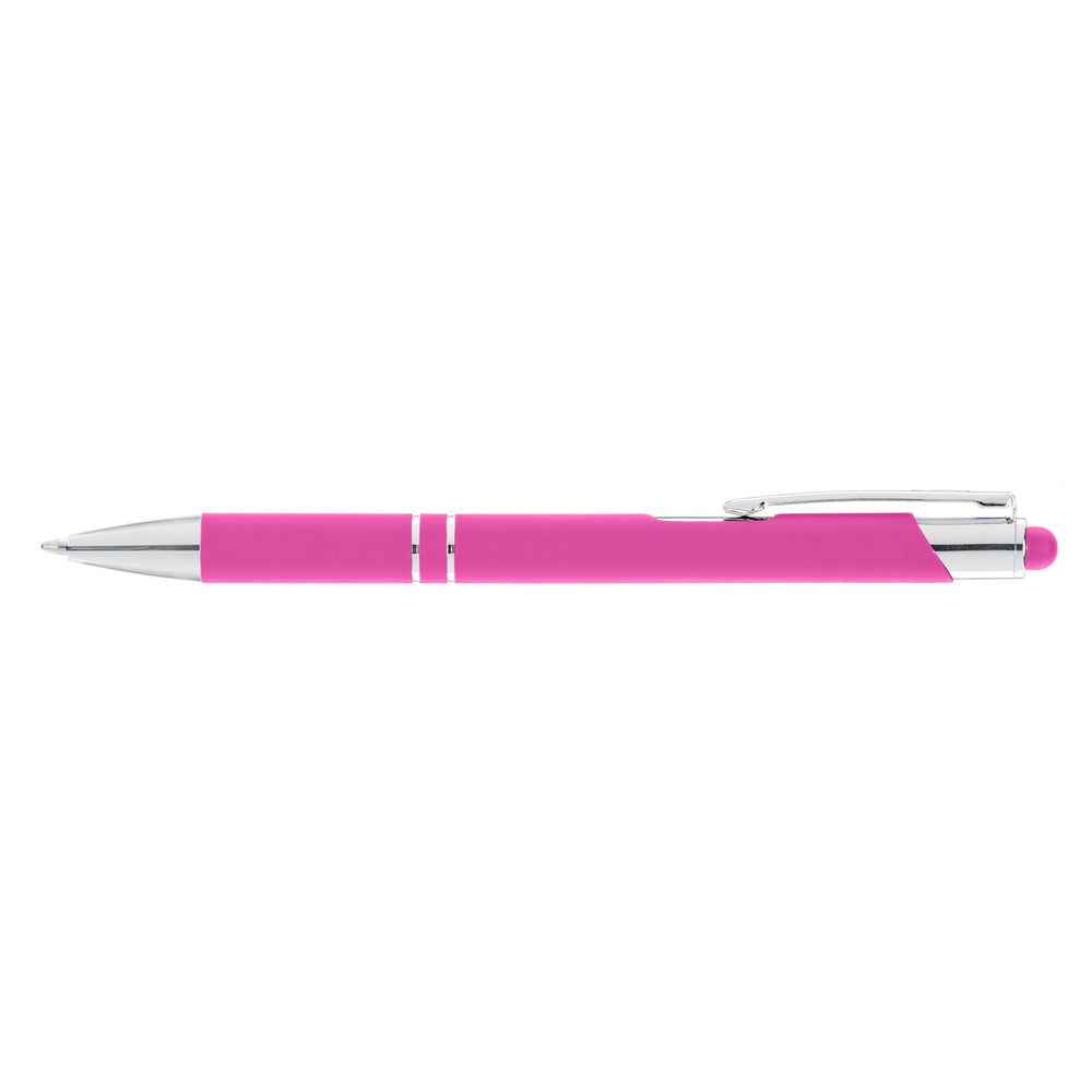 Make a strong connection with new and potential clients using the Tres-Chic Softy Brights with Stylus Top! This medium ballpoint metal pen has a great selection of colors. It features a soft touch body, chrome trim with accent rings and your company's imprint. Your tech customers will get a kick out of using this pen to write and then to navigate apps on their phones or other electronics that can be used with a stylus. Add some variation to your advertising campaign!