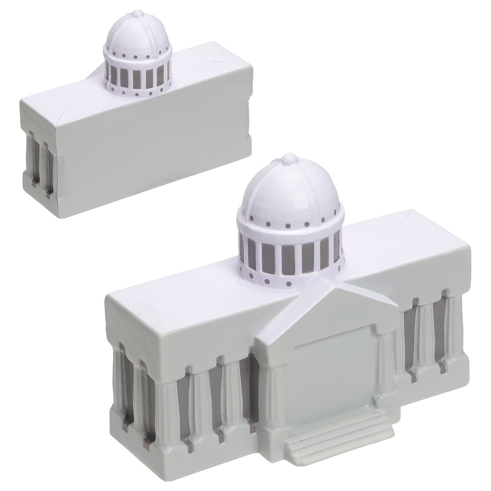 NON-STOCK STRESS RELIEVER. This items not normally carried in inventory but can be ordered as a custom overseas order. Courthouse Shaped Polyurethane Stress Reliever. White stress relievers may discolor over time. Care instructions are provided with your shipment.
