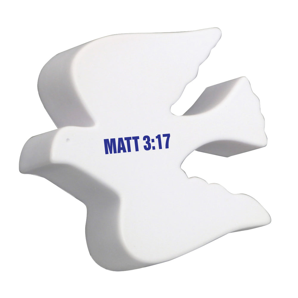 Dove Shaped Polyurethane Stress Reliever. White stress relievers may discolor over time. Please store them in their plastic bags away from direct sunlight and distribute within 3 months.