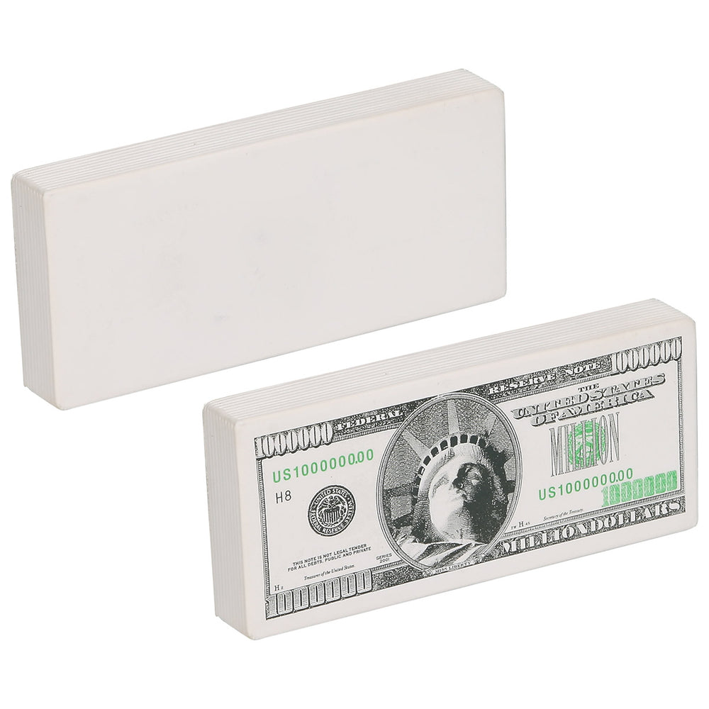 Million Dollar Bill Shaped Polyurethane Stress Reliever. White stress relievers may discolor over time. Please store them in their plastic bags away from direct sunlight and distribute within 3 months.