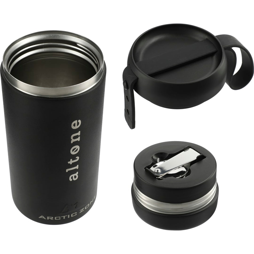The innovative, on-trend Arctic Zone® Titan 20oz Meal Container is copper-insulated and holds 560ml, with a detachable snack storage space that holds an extra 150ml. It includes a foldable spoon that conveniently stores on the lid of the snack container. It also includes an adjustable silicone strap. Keeps food cold for up to 24 hours and hot for up to eight.