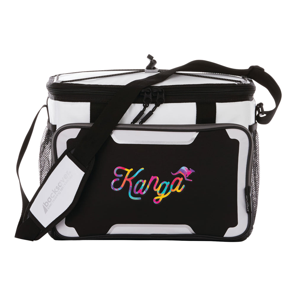 It features SuperFoam® high performance insulation with Therma-Flect® radiant barrier to keep contents cold and an Ultra Safe® leak proof, easy clean lining. The exterior is constructed of Rhino-Tech® water and stain resistant material and includes a large zippered pocket, 2 mesh pockets, elasticized gear straps and an adjustable Backsaver® shoulder strap that centers load weight to reduce body stress.