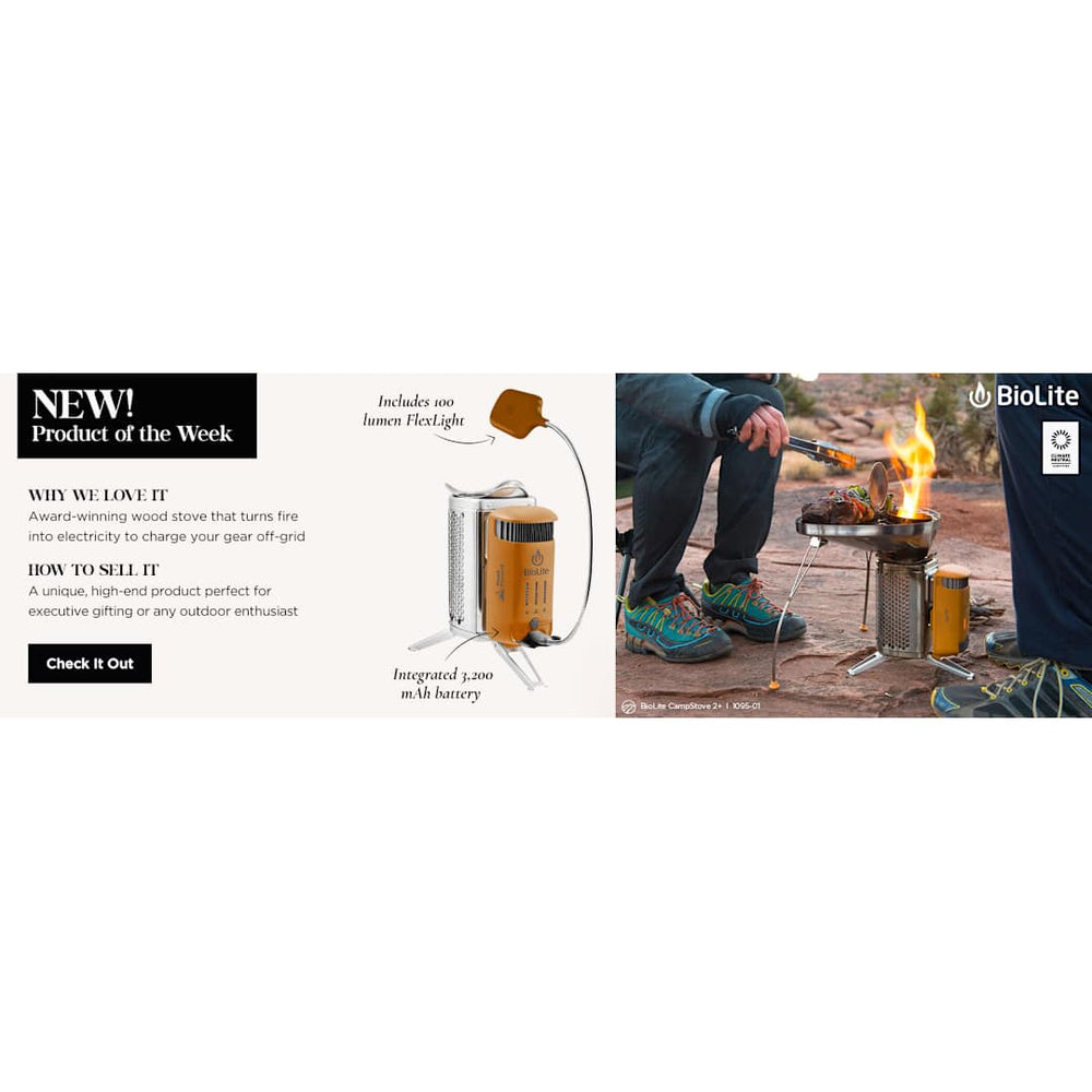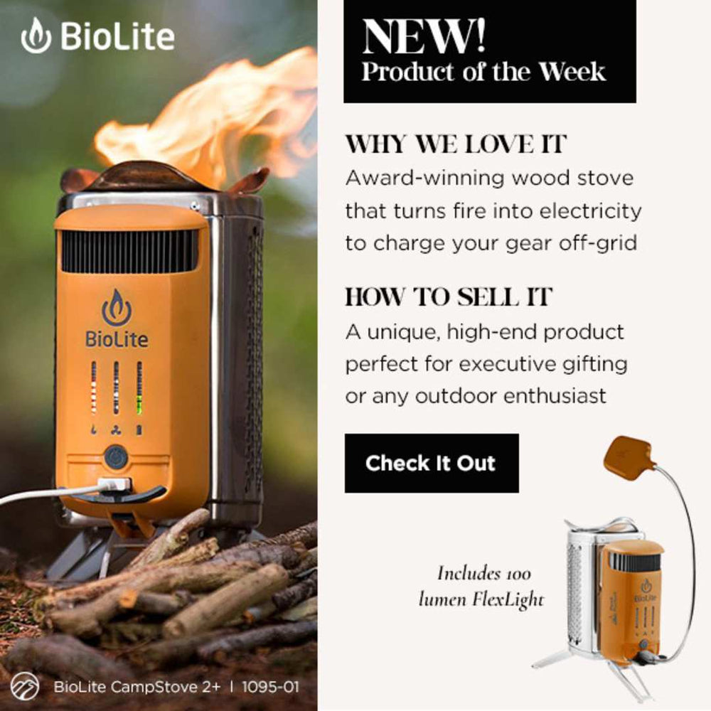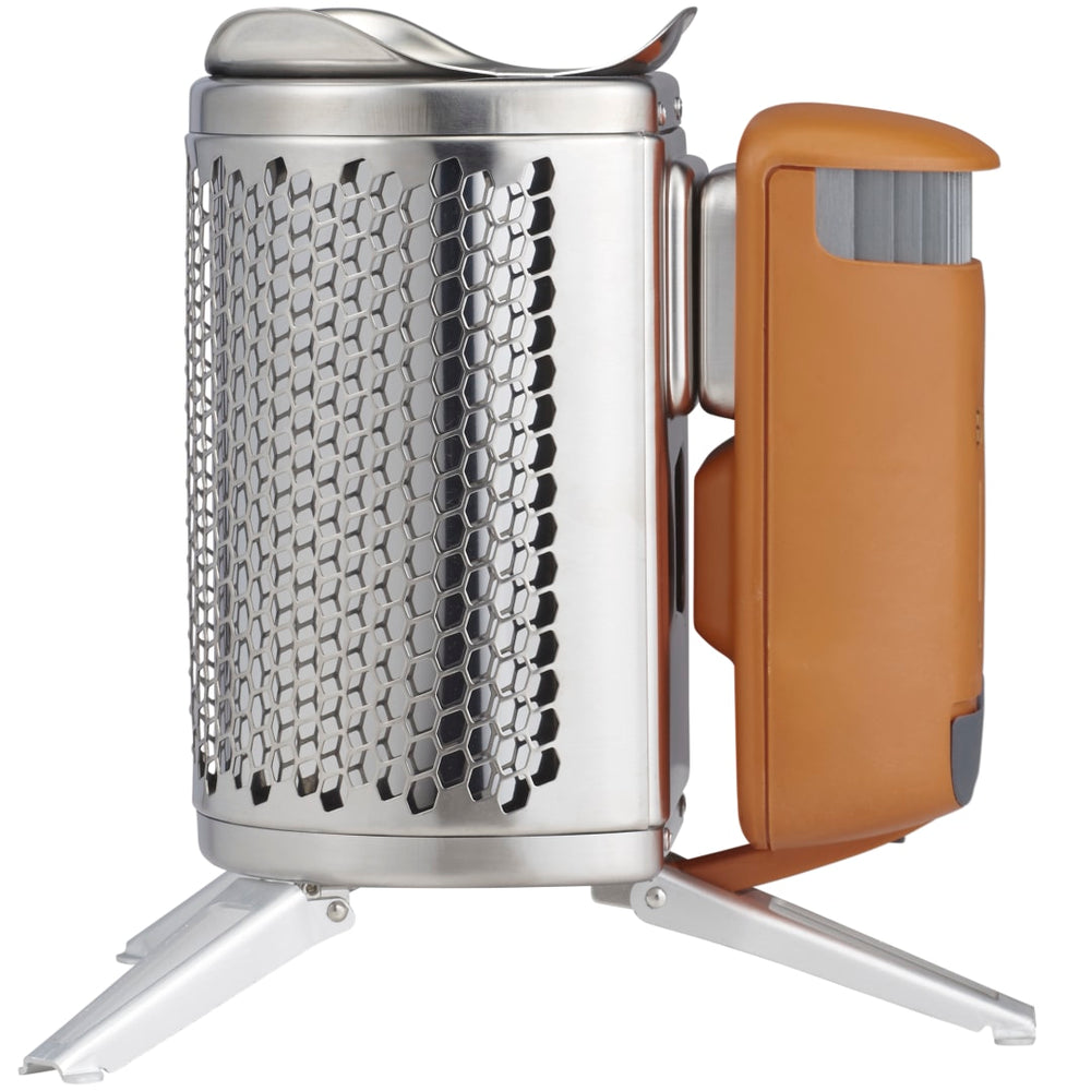 Turn fire into electricity with BioLite's award-winning stove. Patented combustion technology creates a vortex of smokeless flames for a portable campfire that can cook your meals and charge your gear, all at the same time. Leave the gas canisters behind and unlock the potential of the sticks and twigs around you. Charge phones, lights, and more with 3W of power. Updated 3,200 mAh internal battery stores power. Burn sticks, wood scraps, or pellets. Boil Time: 1L in 4.5 min. Packs down to size of a 32oz widemouth water bottle. Bonus FlexLight with ChromaReal LED technology included to light surroundings.