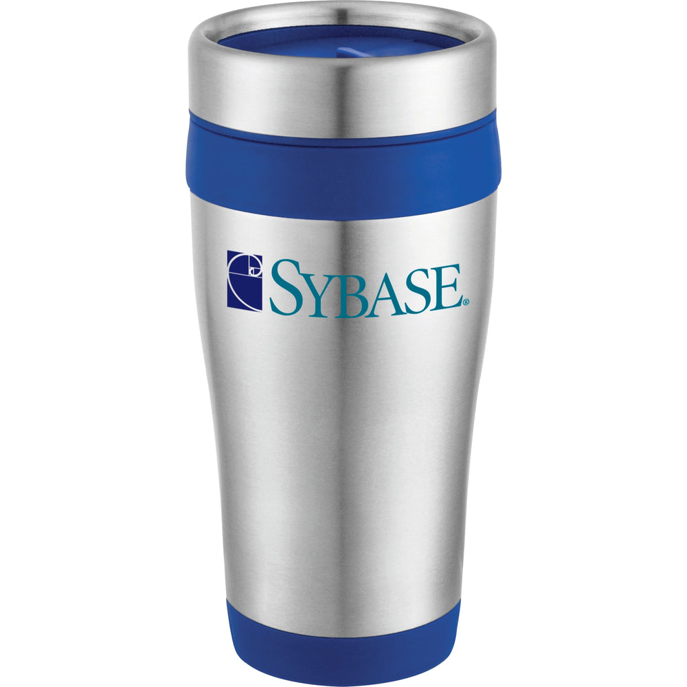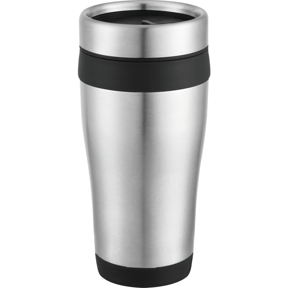 The Carmel 16oz Travel Tumbler features double-wall construction and stainless steel twist-on lid with a slide-lock drink opening. Hand wash only and follow any included care guidelines.
