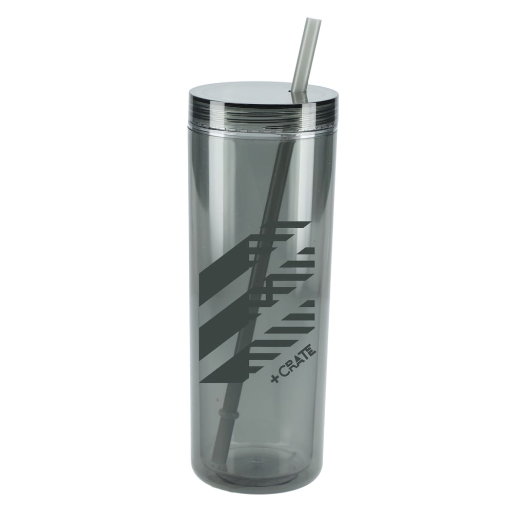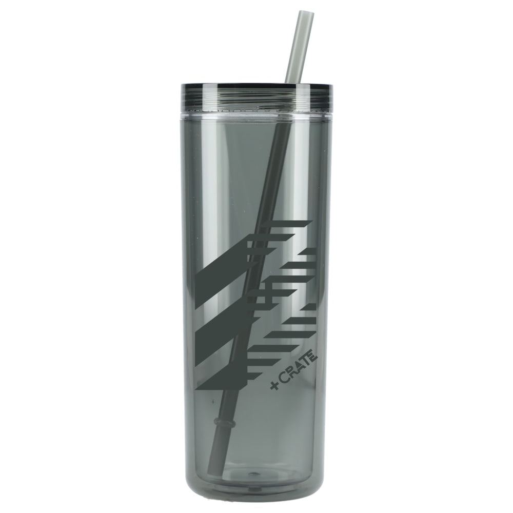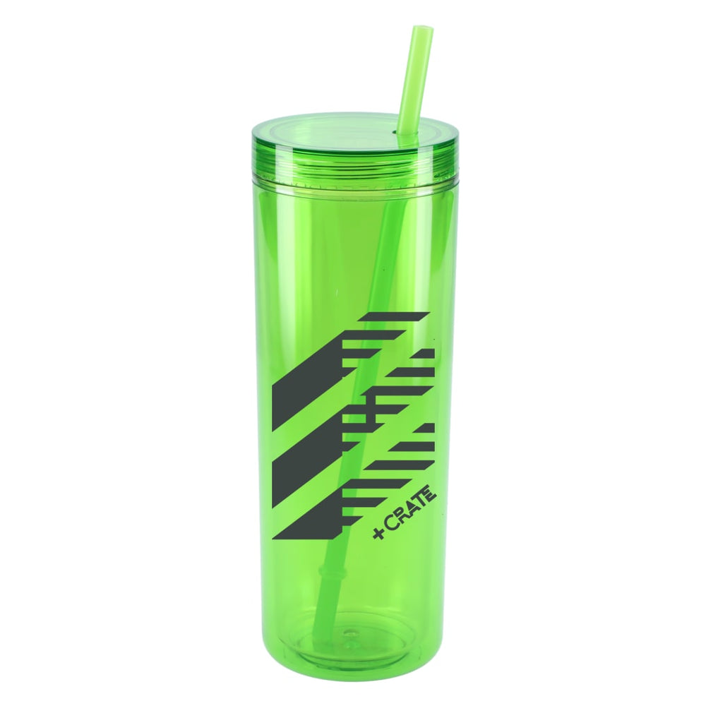The Chroma Recycled Acrylic Straw Tumbler 16oz is an on-trend and eco-friendly option at an amazing value. Made from 100% recycled SAN and includes a 100% recycled PP straw which is notched to help prevent the straw from getting lost. Features double wall construction to reduce condensation and help prevent drips onto tables and countertops. This acrylic tumbler is perfect for traveling, the outdoors, and at home. Hand wash only. 16oz