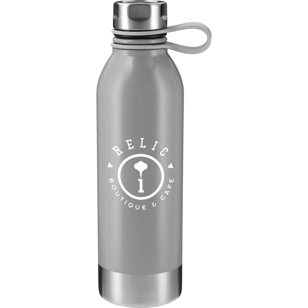 The Perth 25oz Stainless Sports Bottle features single-wall construction and stainless steel screw-on lid with comfort handling loop. Hand wash only and follow any included care guidelines.