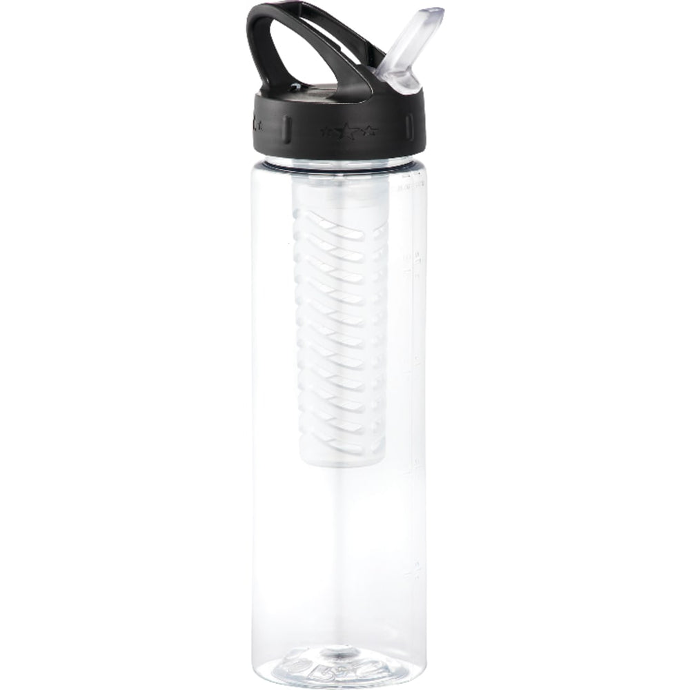 The Fruit Infuser 25-ounce Sports Bottle is a USA-made, BPA-free sports bottle with a twist-on lid and flip-top drinking spout. It also includes a twist-on fruit infuser lid to add flavor to your favorite drink and oz measurement markings are conveniently located right on the bottle. It's phthalate-free, non-toxic, lead-free and meets FDA Requirements. Hand wash only and follow any included care guidelines.