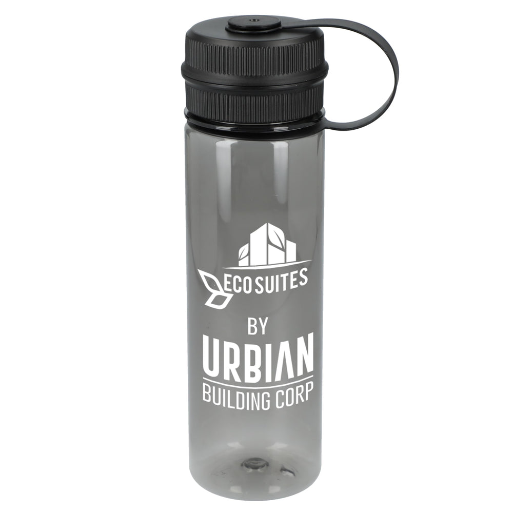 The Venture Recycled rPET 21oz Sports Bottle is versatile, on-trend and built to last. The 100% leakproof lid is secured to the bottle with an easy-carry tether. The top of the easy-grip lid effortless twists apart for access to the chug spout and the lower part completely twists off to access the wide opening for easy cleaning and refilling. This sports bottle is made with 100% durable recycled PET and has a 100% recycled polypropylene (rPP) lid and 100% recycled polyethylene (rPP) tether. Fits most cupholders. Handwash only.