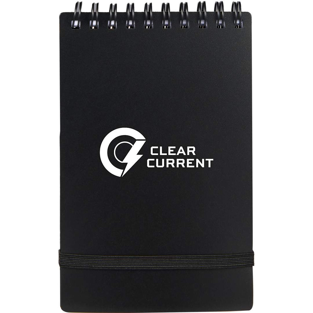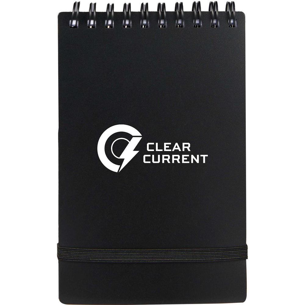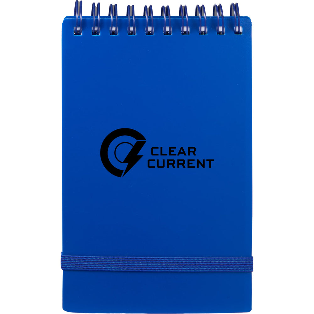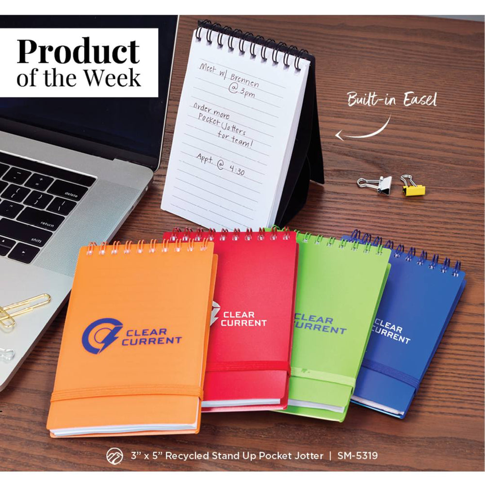 The 3" x 5" Recycled Stand Up Pocket Jotter is a compact tool for capturing notes on the go. With a unique stand-up easel function, this jotter is perfect for viewing notes during meetings and virtual calls. It features a 100% recycled polypropylene front and back cover, 70 sheets of recycled lined paper, and color-matching elastic closure and spiral wire binding for a coordinated look. By choosing this jotter, you’re making a positive impact on the environment through a partnership with 1% For The Planet, as a portion of each sale supports environmental nonprofits.