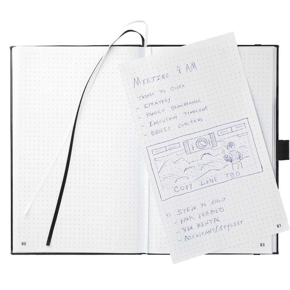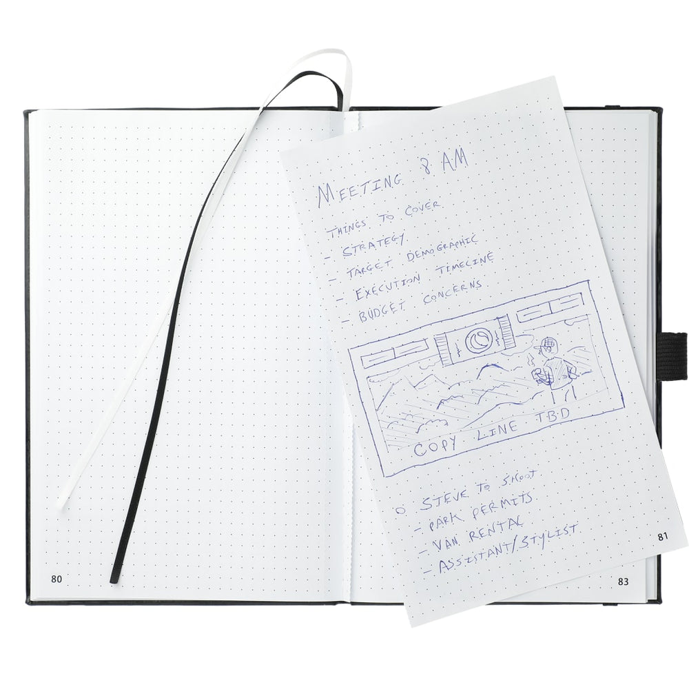 The 5.5" x 8.5" FSC Mix FUNCTION Bulleting Notebook is perfect for organizing your thoughts. Features a square, cornered hardbound cover with color-matching elastic closure and pen loop. Double-ribbon page markers. 80 sheets of FSC Mix white perforated dotted and numbered pages. Pair it with your favorite gel pen.