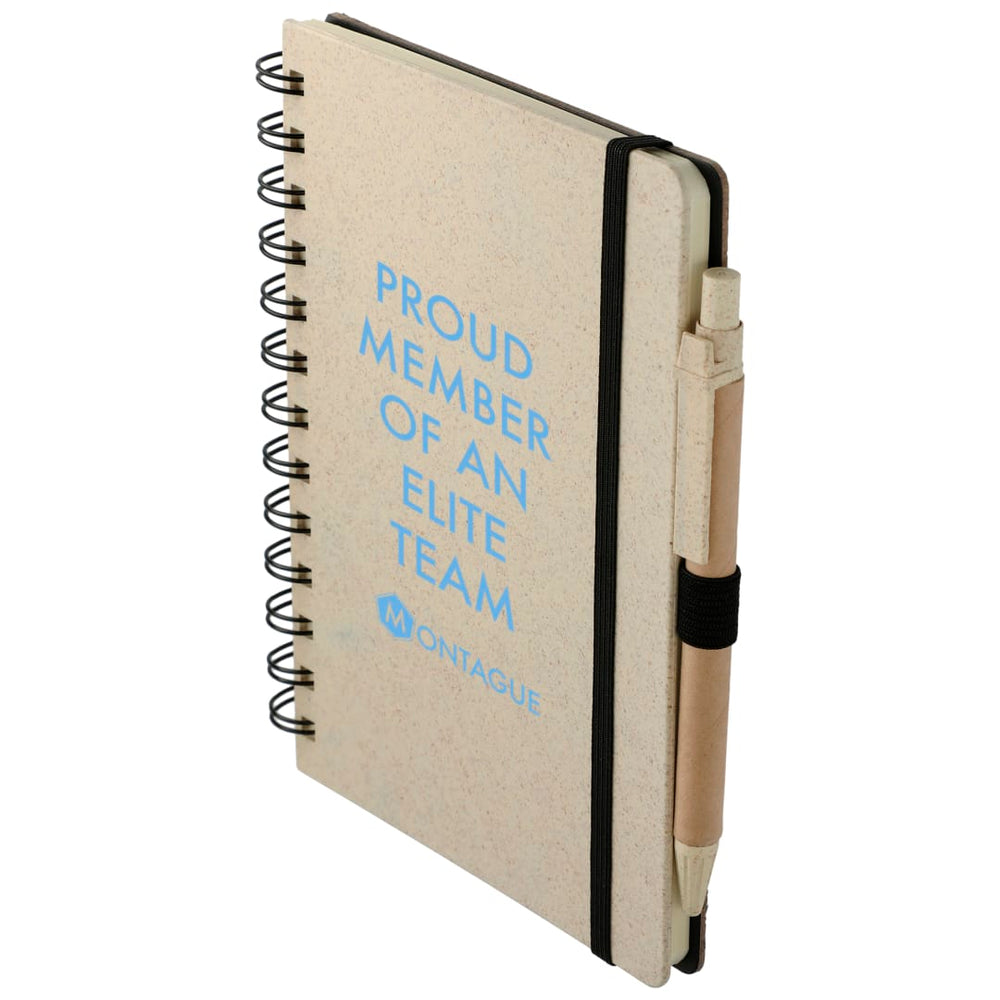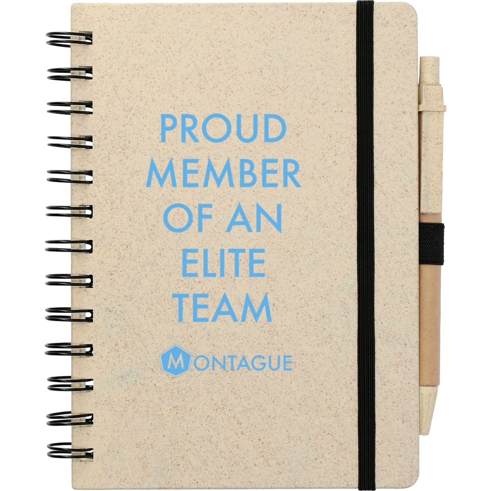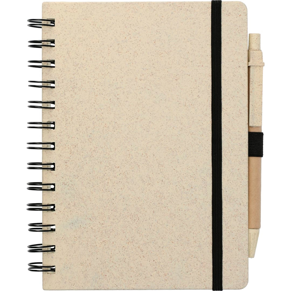 The 5" x 7" FSC Mix Wheat Straw Notebook With Pen has a 51% wheat straw cover. It also features a black elastic closure and pen loop. It comes with a wheat straw color matching pen with black ink cartridge. This wheat straw notebook contains 70 sheets of FSC Mix lined paper. Through a partnership with 1% For The Planet, one percent of sales of EcoSmart products will be donated to nonprofits dedicated to protecting the planet.