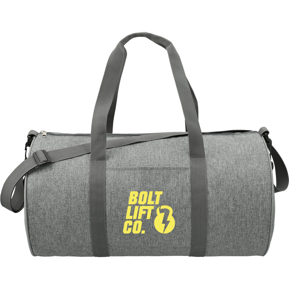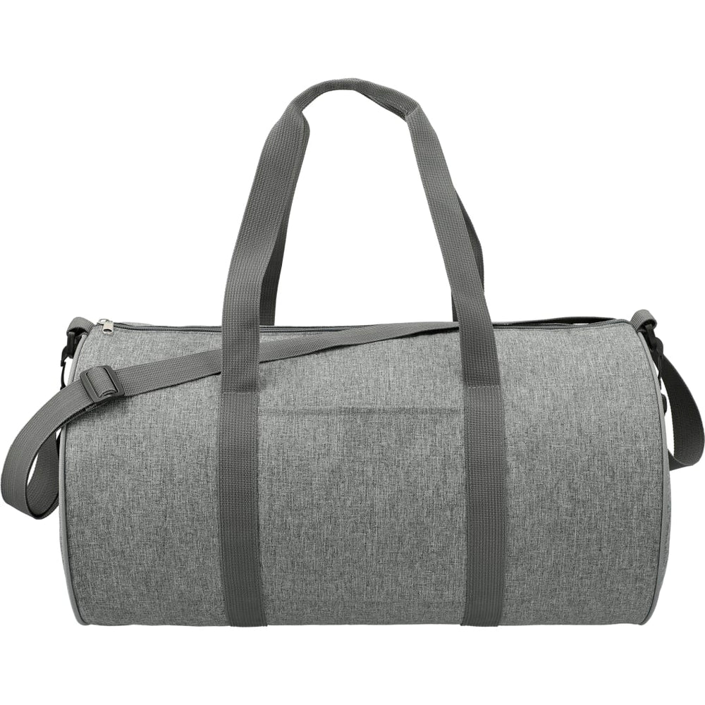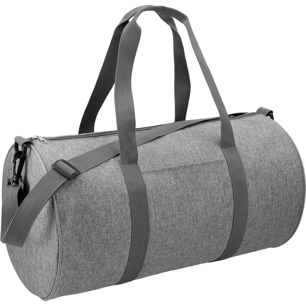 The Tahoe 18" Graphite Barrel Duffel features a zippered main compartment, front slash pocket, adjustable/removable shoulder strap and webbing grab handles in a timeless duffel silhouette. The material is a durable 600D Polycanvas with a coated inner lining.