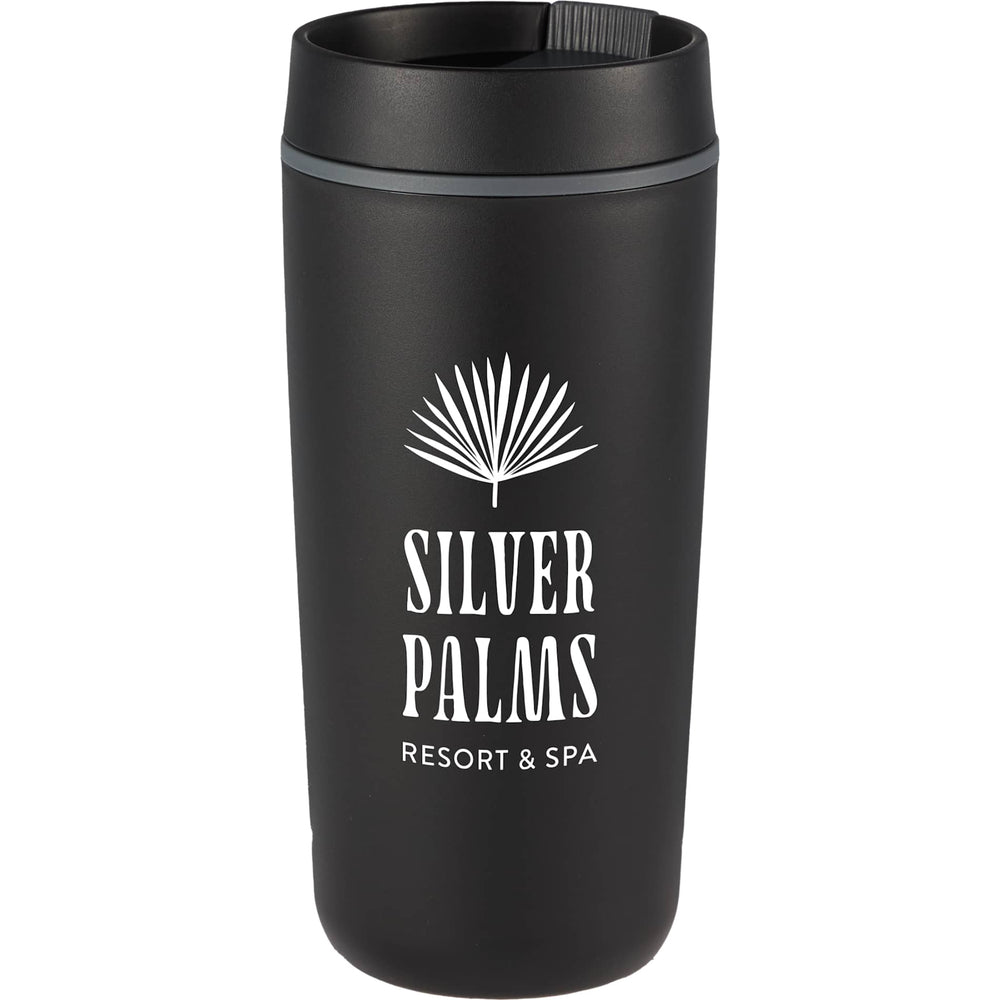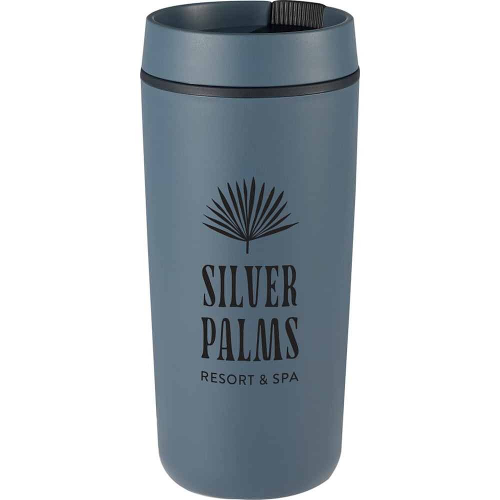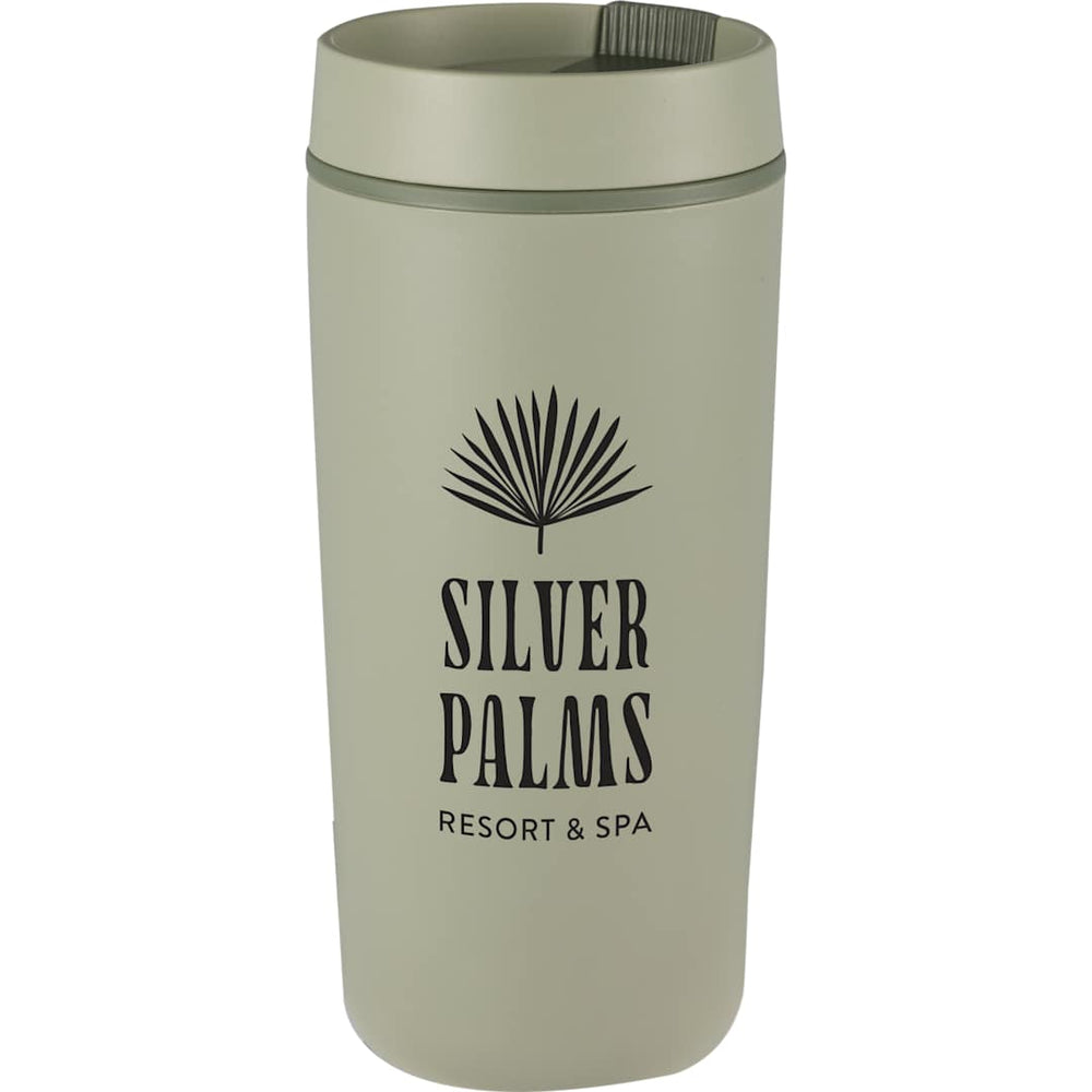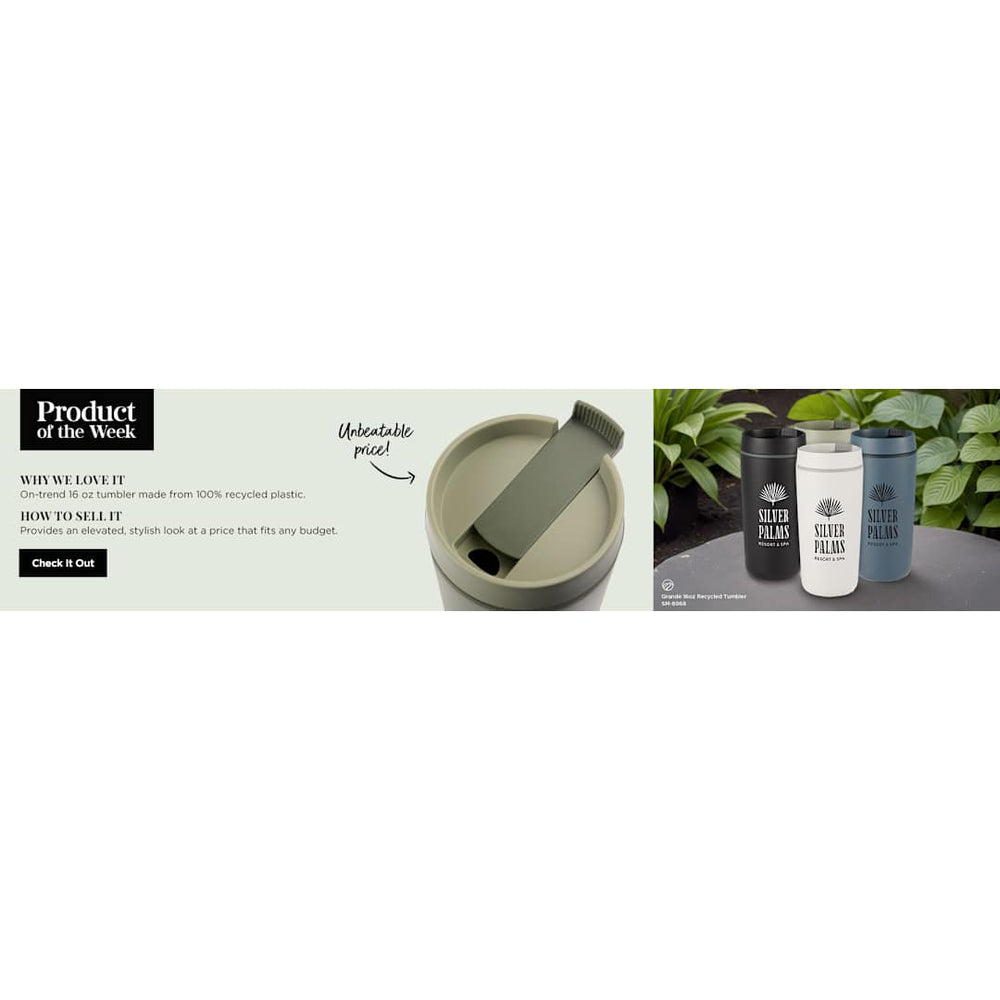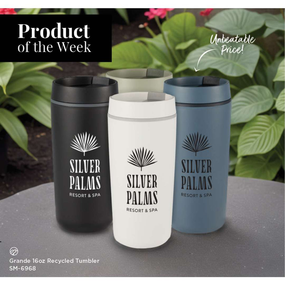 The Grande Tumbler is a 16oz, recycled travel companion crafted entirely from 100% recycled plastic. Its air-insulated, double-wall construction helps maintain the temperature of your favorite hot or cold beverages in any environment. The screw on lid features a slide-lock opening, allowing for easy sipping on the go. Designed for durability and everyday use, this tumbler is the perfect blend of style and function. Hand wash only.