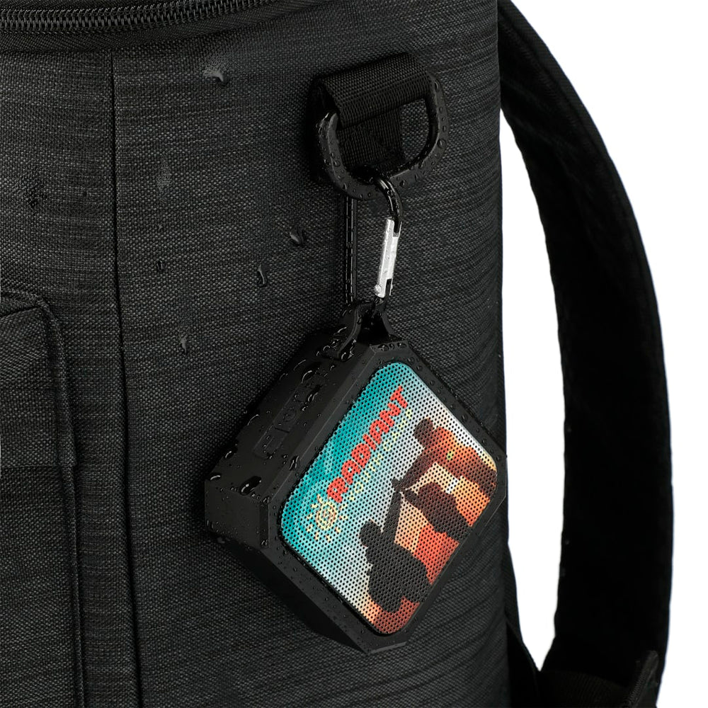 The rough and tough Backwater Outdoor Bluetooth Speaker can be taken on any adventure. The compact size makes it easy to carry on your daily adventures or it can be clipped to your favorite backpack with the included carabineer clip. With an IPX6 waterproof rating, wet conditions won’t damage the speaker. It features a 3 Watt speaker and built in microphone and music controls. Bluetooth working range is 10 meters (33 feet).Enjoy up to 2hrs of music at max volume on a single charge. Carabineer and micro usb charging cable included. Charging time: 1.5hrs. Bluetooth 5.0