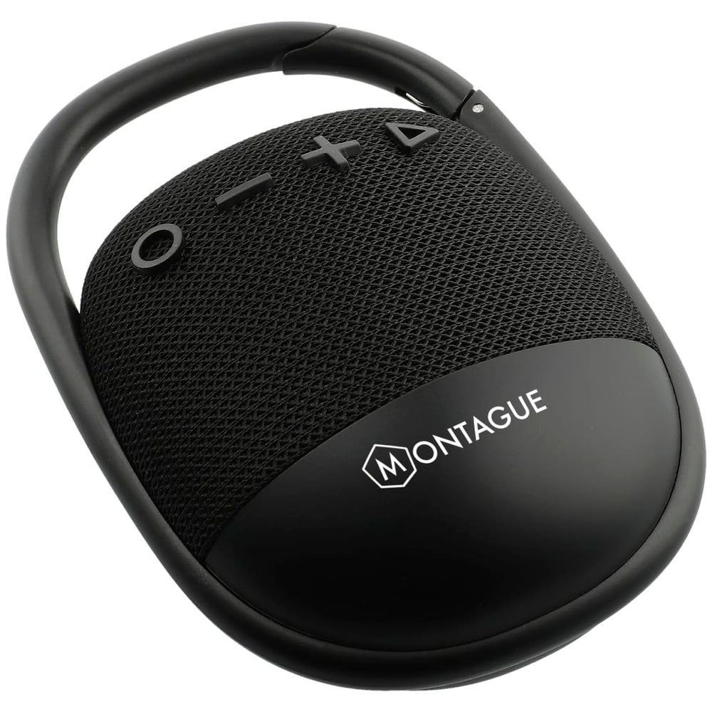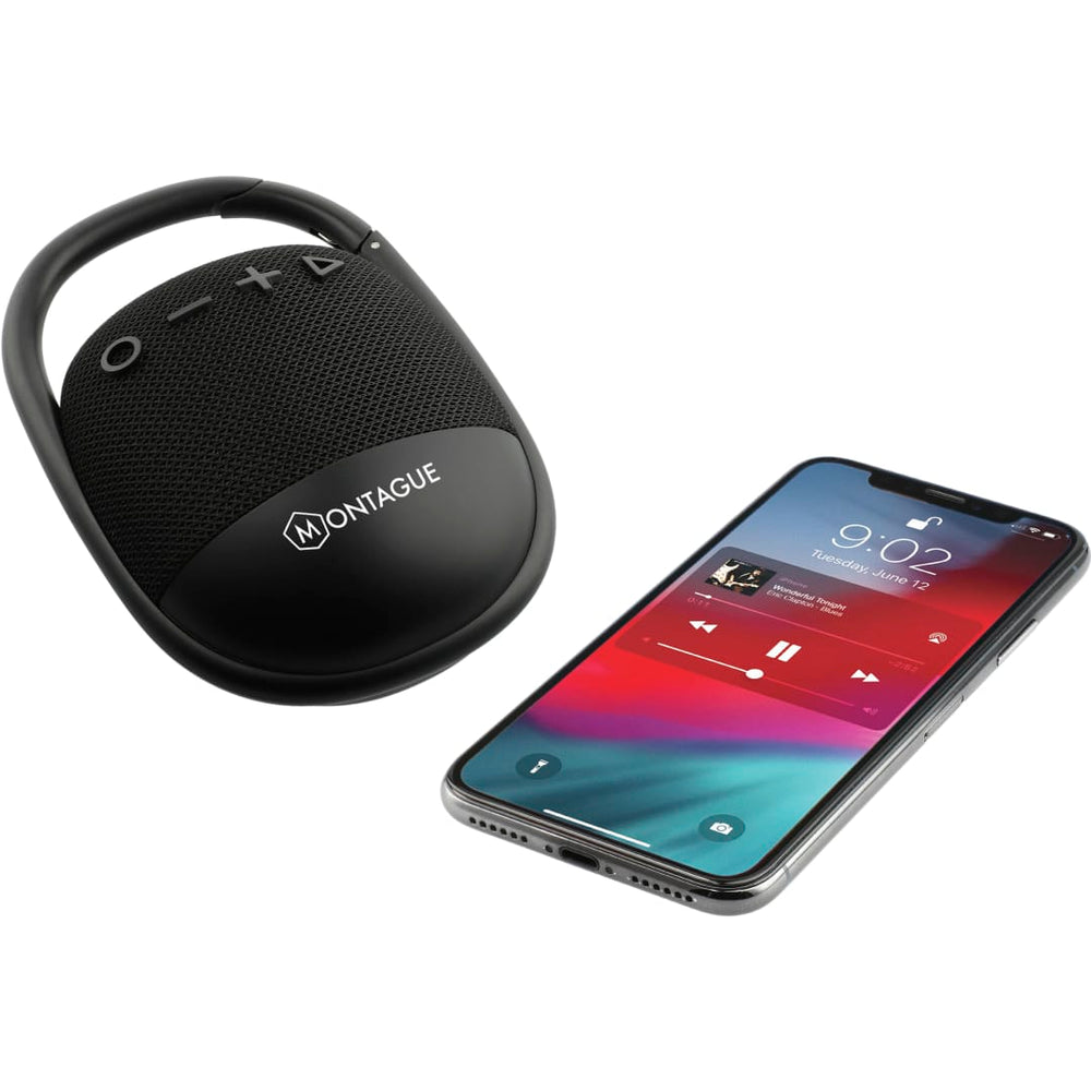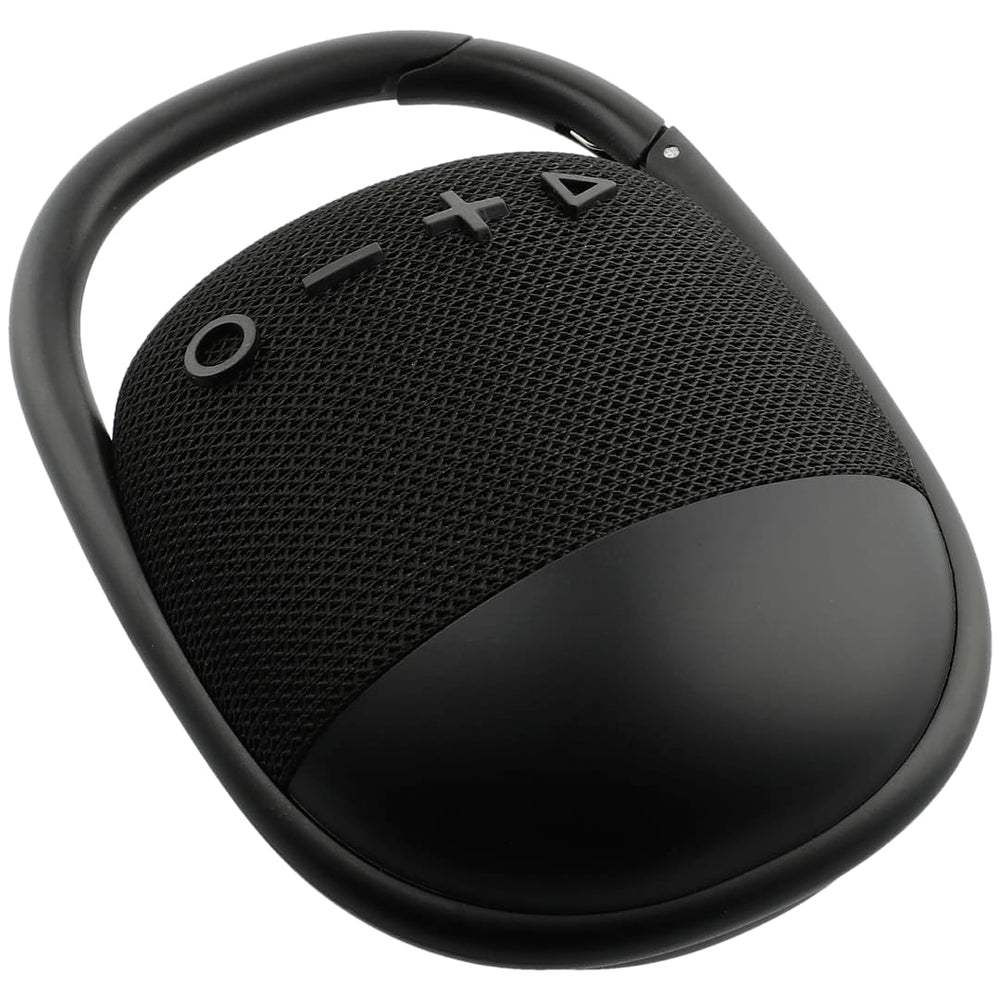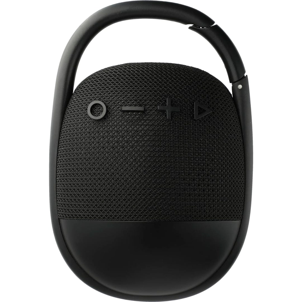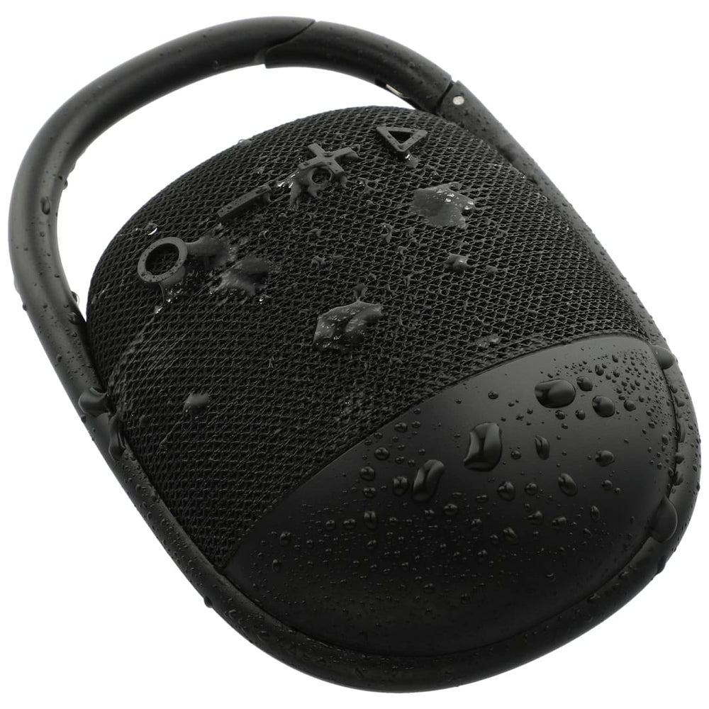 Enjoy your favorite music from anywhere. The Fabric Clip Waterproof Bluetooth® Speaker easily clips to your favorite bag, letting you bring it to the pool, the park, or to your next house party. Enjoy hands-free operation with built-in microphone and music controls. The 5W output fills any room with quality sound. It has an IP67 waterproof rating, which means it can submerged under water without damaging. Also includes a type-C-to-USB charging cable. Working Bluetooth® range is 10 meters (33 feet). Enjoy up to five hours of music at max volume on a single charge. Charging time: 4 hours.