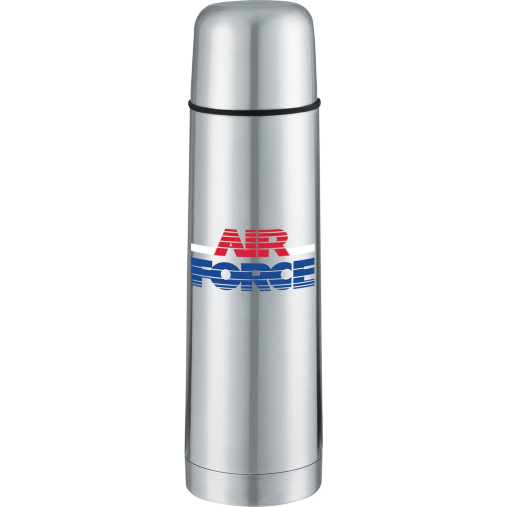 The Bullet 16.9oz Vacuum Bottle features double-wall construction and a leak-proof locking cap. It helps keep drinks hot for 5 hours and cold for 15 hours. Engraving is also available on the top of the cap only. An optional zippered Ultra Hyde Pouch, SM-9006, is available at additional $0.64(G) US/$0.912(G) CDN per piece. The pouch is not available for imprint and bottles are not inserted in pouch. Hand wash only and allow any included care guidelines.
