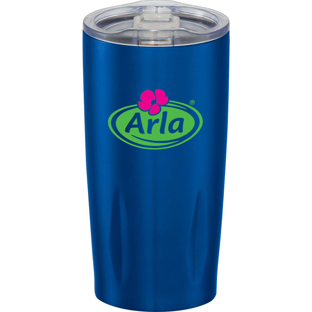 The Rocky 20oz Vacuum Tumbler features double-wall construction and is vacuum insulated. The press-on lid has a slider closure for easy use and conveniently keeps drinks hot for 5 hours and cold for 15 hours. Hand wash only and follow any included care guidelines.
