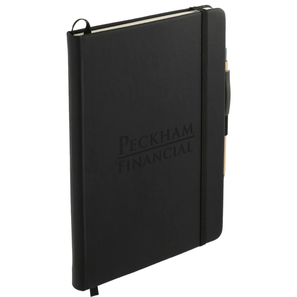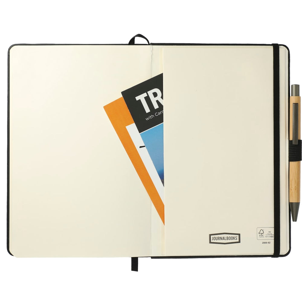 The 5.5" x 8.5" Cactus Leather Bound JournalBook® Set includes the 5.5" x 8.5" Cactus Leather Bound JournalBook® (2800-92) and the Bamboo Quick-Dry Gel Ballpoint (1066-49). Features a uniquely crafted cover made of 20% of cactus components and 80% bio polyurethane. Color-matching elastic closure, pen loop and ribbon page marker. 80 sheets of FSC® Mix cream lined paper. Through a partnership with 1% For The Planet, one percent of sales of all EcoSmart® products are donated to environmental nonprofits.