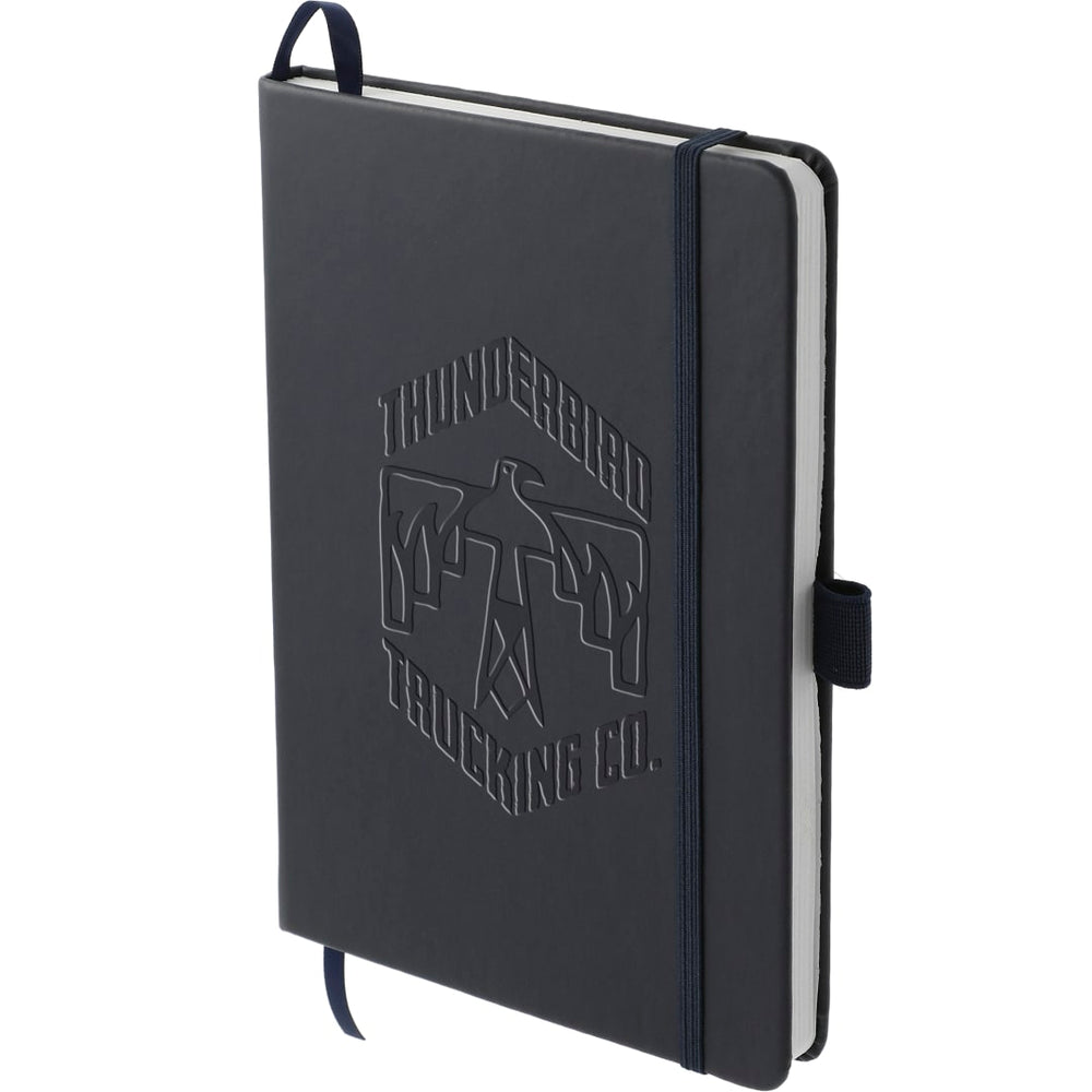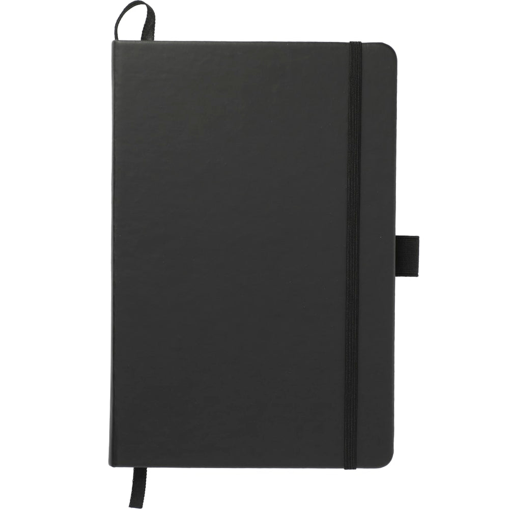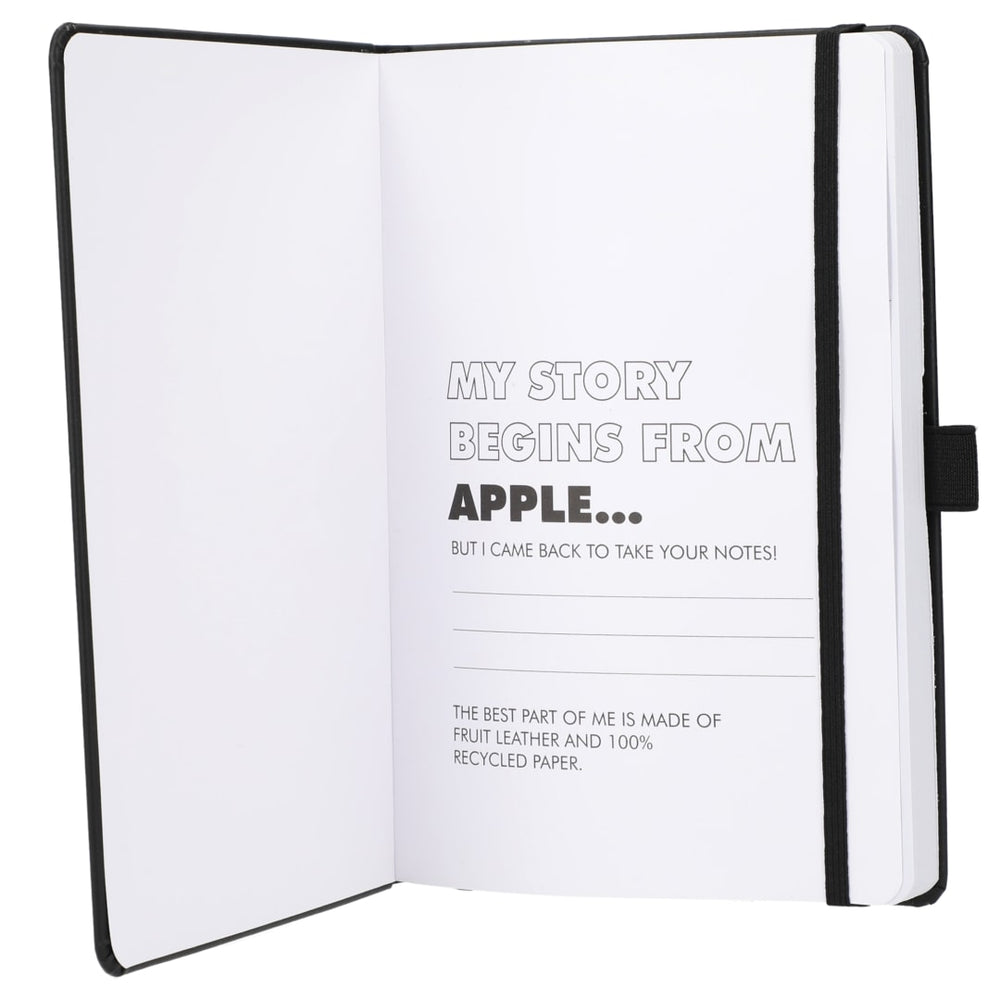 5.5” x 8.5” Mela Bound JournalBook ® features a uniquely crafted with 39% of apple components. Hard cover, color matching elastic closure, pen loop and ribbon page marker. 80 sheets of white lined recycled paper. Back document pocket. Through a partnership with 1% For The Planet, one percent of sales of all EcoSmart® products will be donated to environmental nonprofits.