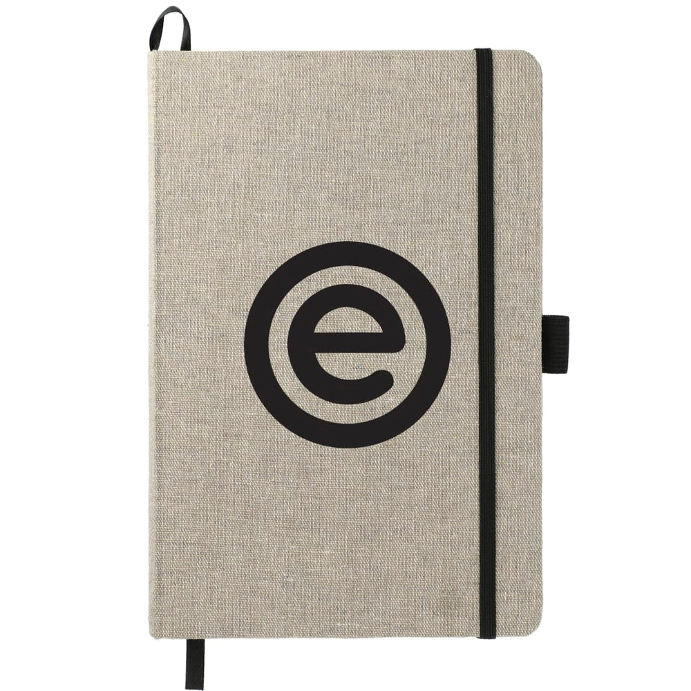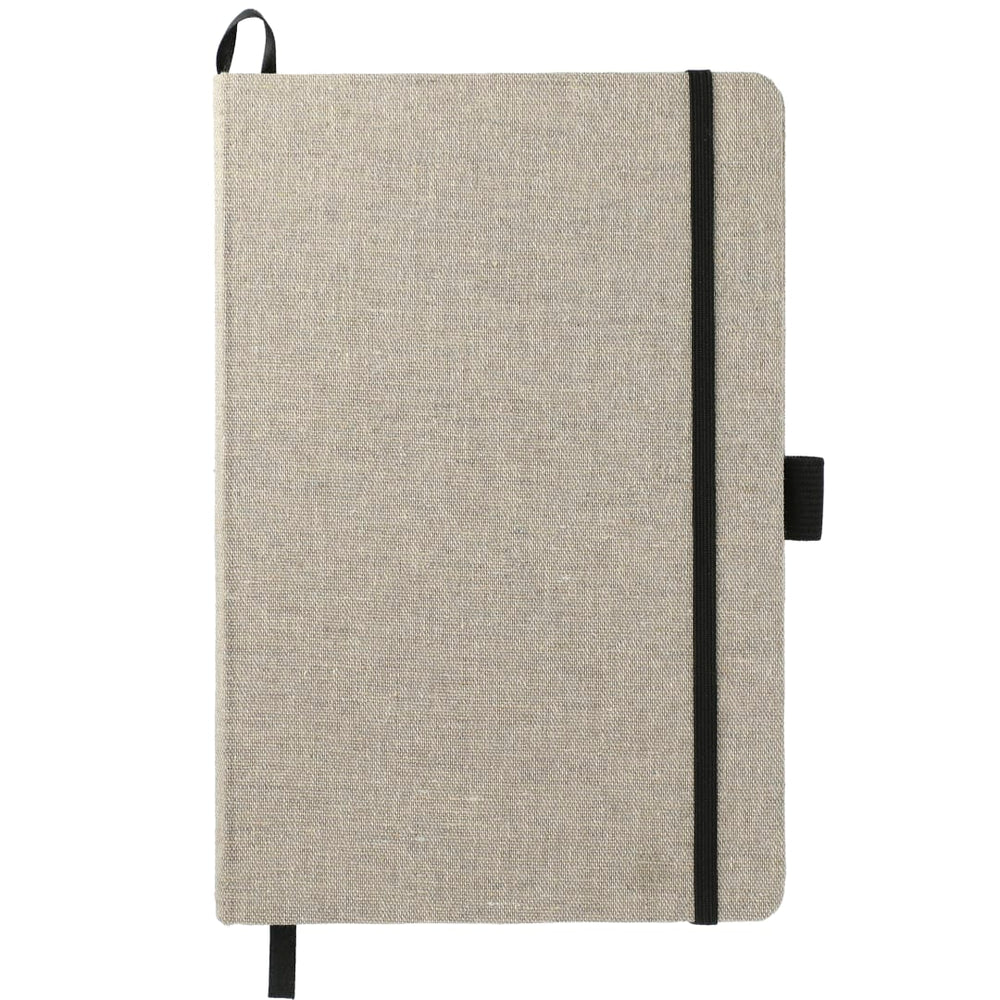 The 5.5" x 8.5" Recycled Cotton Bound JournalBook® is perfect for all of your notetaking needs. Features a hard cover made from recycled cotton. Natural color elastic closure, pen loop and ribbon page marker. 80 sheets of FSC® Mix cream lined paper. Back document pocket. FSC® label printed inside. Through a partnership with 1% For The Planet, one percent of sales of all EcoSmart® products are donated to environmental nonprofits.