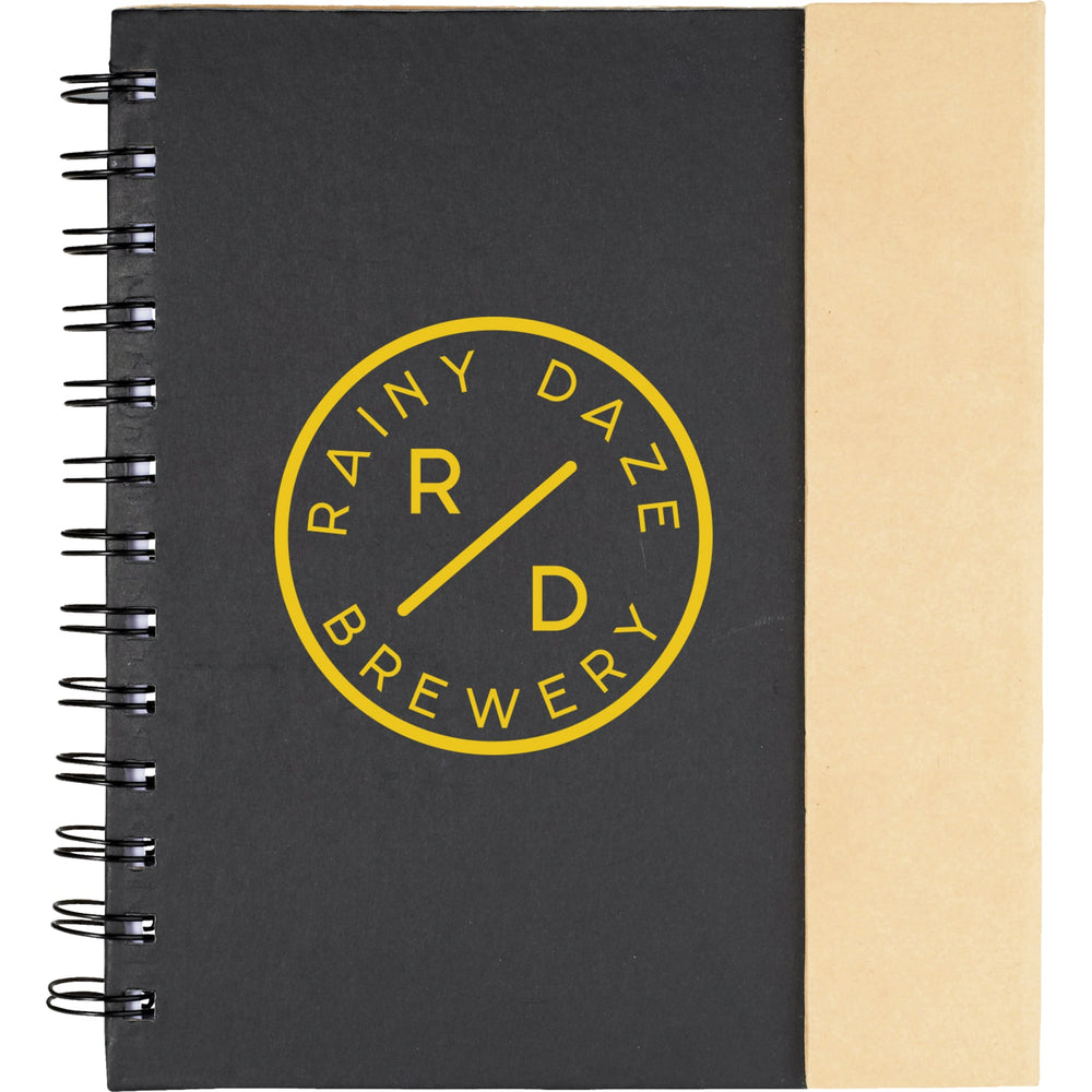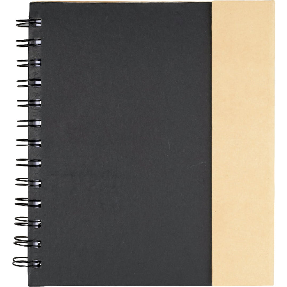 The Bullet 6.5" x 7" FSC Mix Lock-it Spiral Notebook with Pen features 70 ruled pages of FSC Mix paper and a magnetic closure. It also includes 25 sheets of 4" x 3" sticky memo pads and 25 sheets of 3" x 2" sticky memo pads in 5 assorted colors. The Lock-it Spiral Notebook also comes with a recycled cardboard ballpoint pen. A pen imprint is not available.