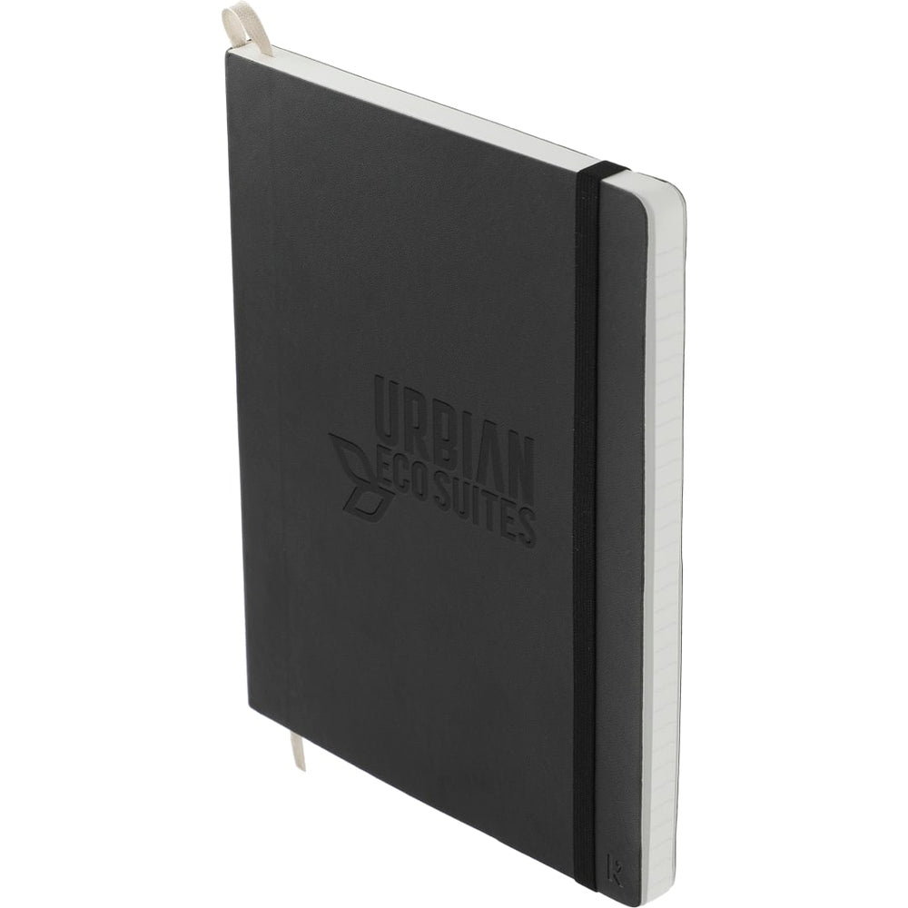 The Karst 5.5" x 8.5" Stone Soft Bound Notebook is made from high-quality, sustainable, recyclable stone paper with a flexible vegan leather cover. With an expandable back pocket, divider ribbon or bookmark, elastic band and lay-flat binding. This unique, eco-friendly notebook is acid-free, bright white, and waterproof with a premium look and feel. The smooth texture of the 72 sheets of white stone lined pages and flat-lay binding provide ample comfort and writing space for your notes and ideas. This stone paper holds a C2C Cradle to Cradle Silver Certification. That means if you do have to dispose of your Karst notebook; it is recyclable. Through a partnership with 1% For The Planet, one percent of sales of all EcoSmart® products are donated to environmental nonprofits.