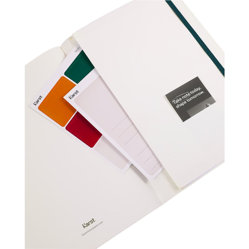 The Karst Pro Series Notebook is designed to keep you organized and focused, providing ample space for brainstorming, planning, and organizing your work. Featuring durable, waterproof, and tear-proof stone paper, this notebook includes 144 pages that are ideal for daily notes, key objectives, and important dates. Thoughtful design elements like colored stickers, index pages, and an expandable back pocket help you keep track of critical notes with ease. The double ribbon page markers and lay-flat thread binding enhance usability, making this notebook a reliable companion.