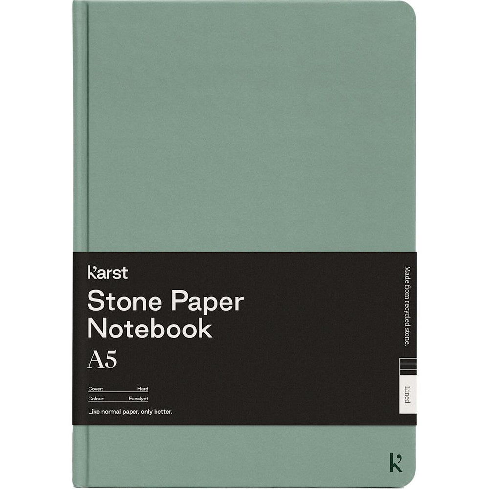 The Karst 5.5" x 8.5" Stone Bound Notebook is made for creatives by creatives. Featuring a water-resistant hard cover and pages, ribbon page marker and back document pocket. The smooth texture of the 72 sheets of white stone lined pages and flat-lay binding provide ample comfort and writing space for your notes and ideas. This stone paper holds a C2C Cradle to Cradle Silver Certification. That means if you do have to dispose of your Karst notebook; it is recyclable. Through a partnership with 1% For The Planet, one percent of sales of all EcoSmart products are donated to environmental nonprofits.