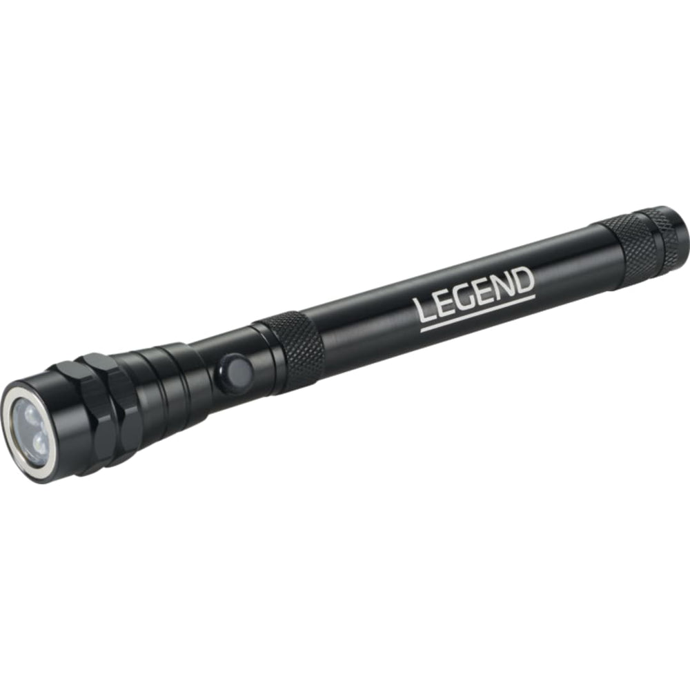 Push button on/off. 3 LED retractable telescopic flashlight with magnet head. 4 button cell batteries included.