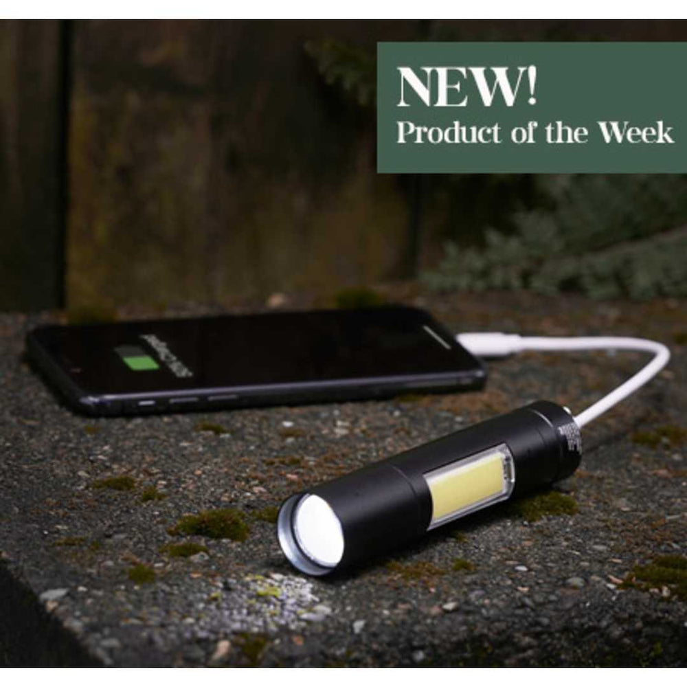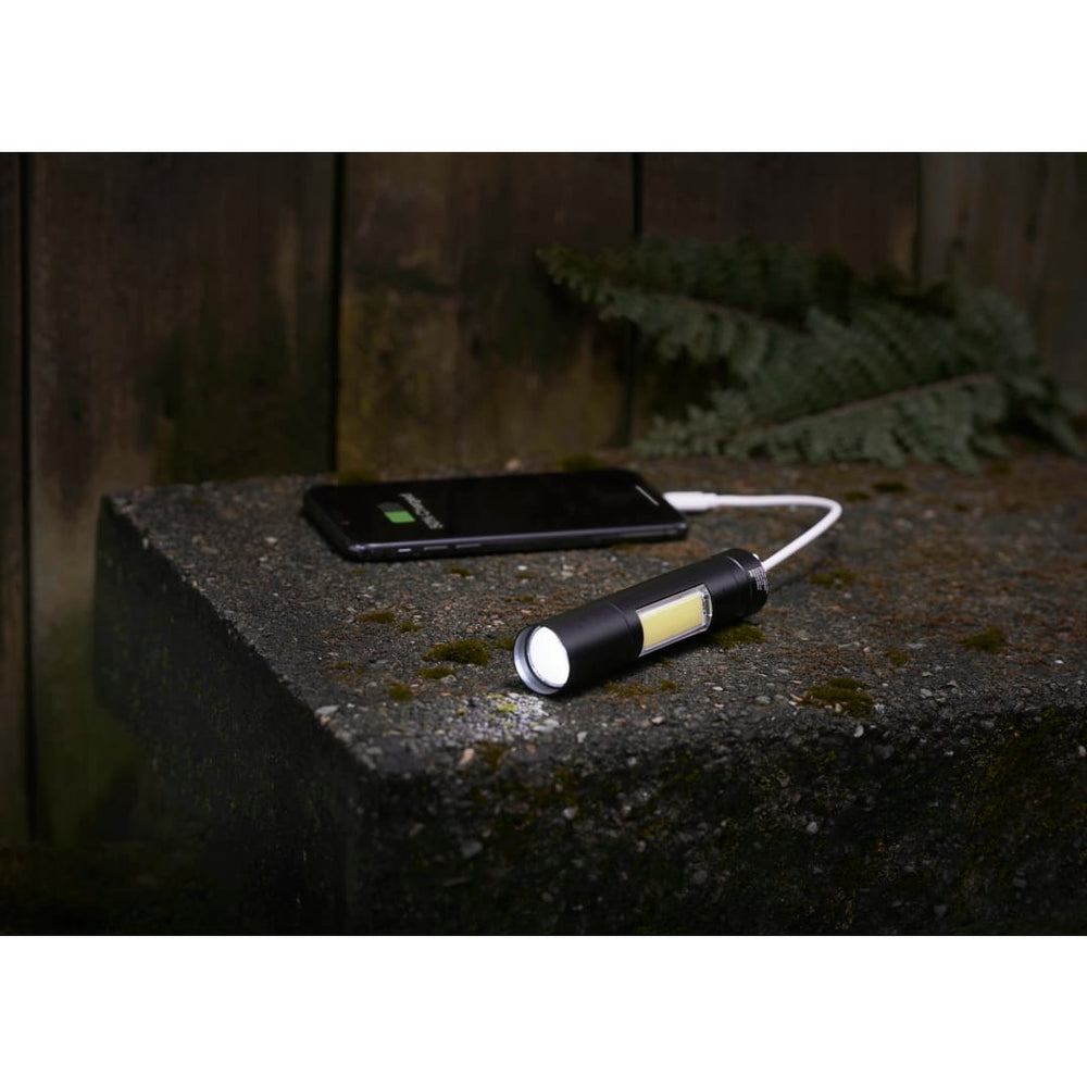 The Rechargeable 2200mah Flashlight is small but mighty. With 2200mAh, this 120-Lumen flashlight can last up to seven (7) hours when fully charged! To charge, simply plug in the USB cable and allow 4 hours to fully charge. It also features a COB side light. Charging cable is 7.8". Both input/output are 5V/1A. Instructions included.