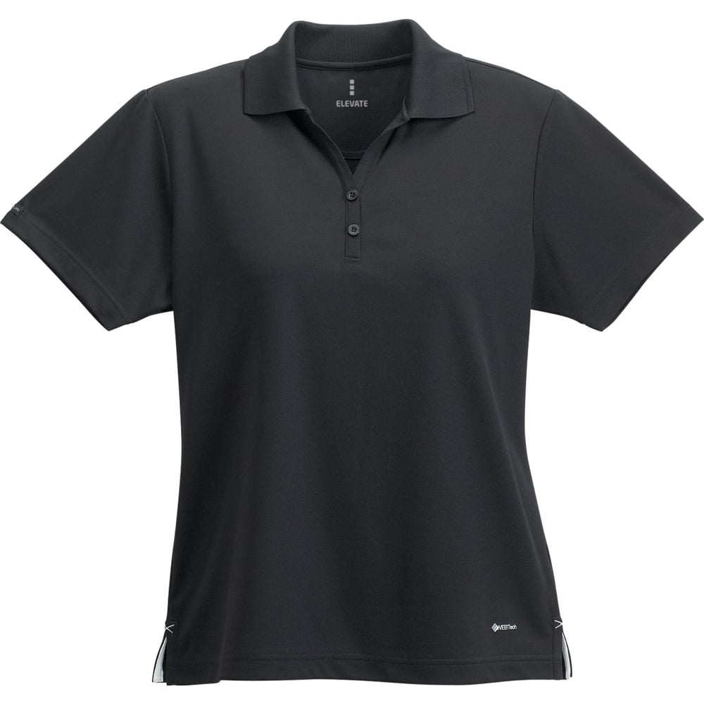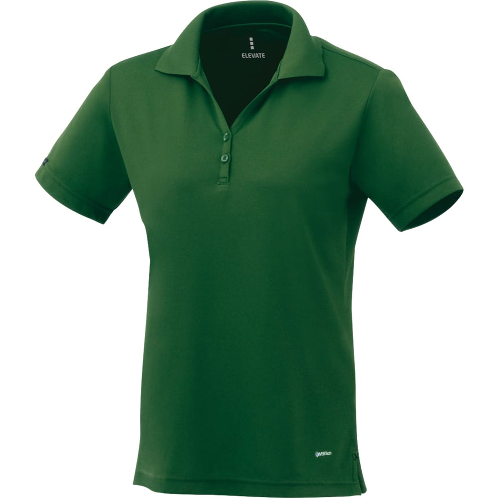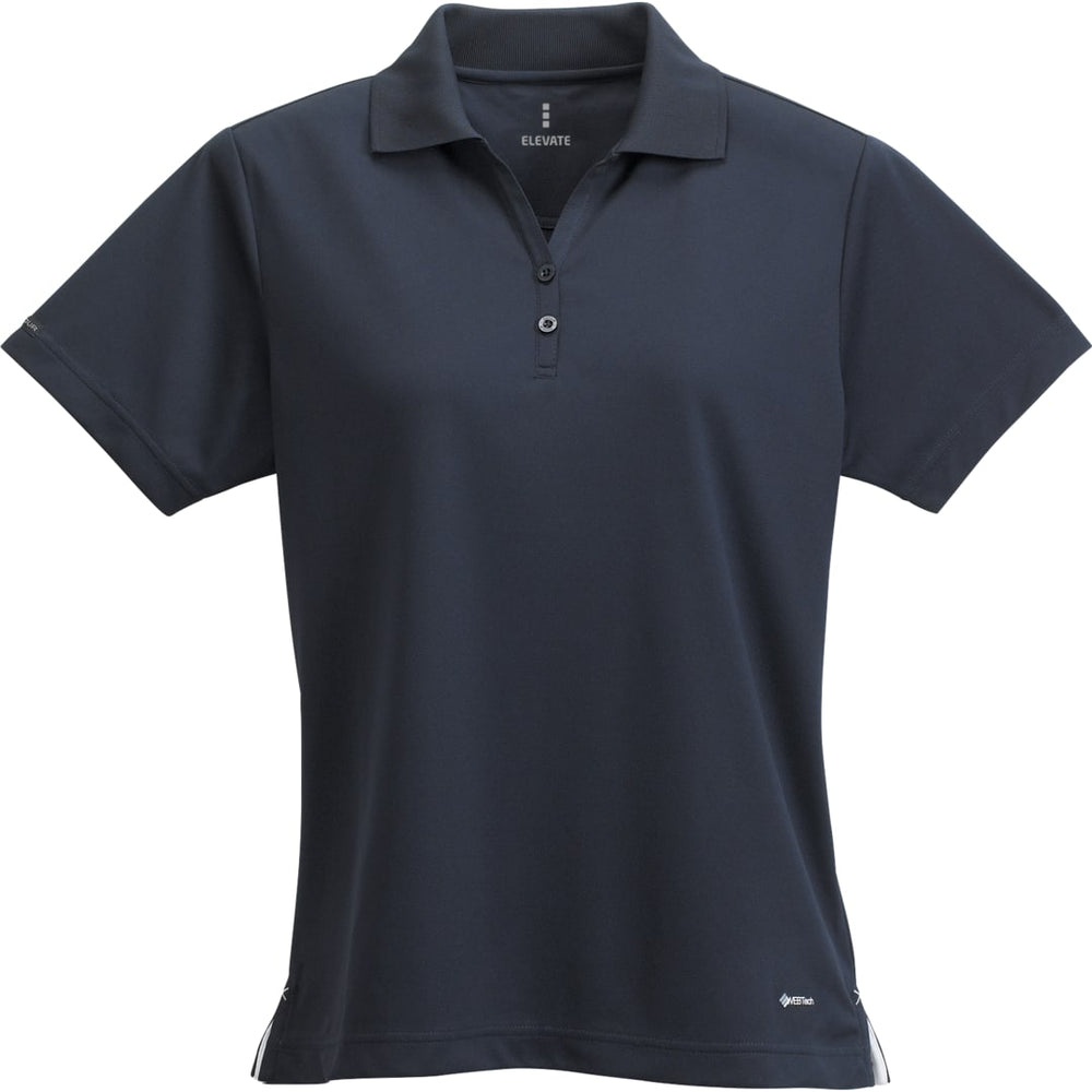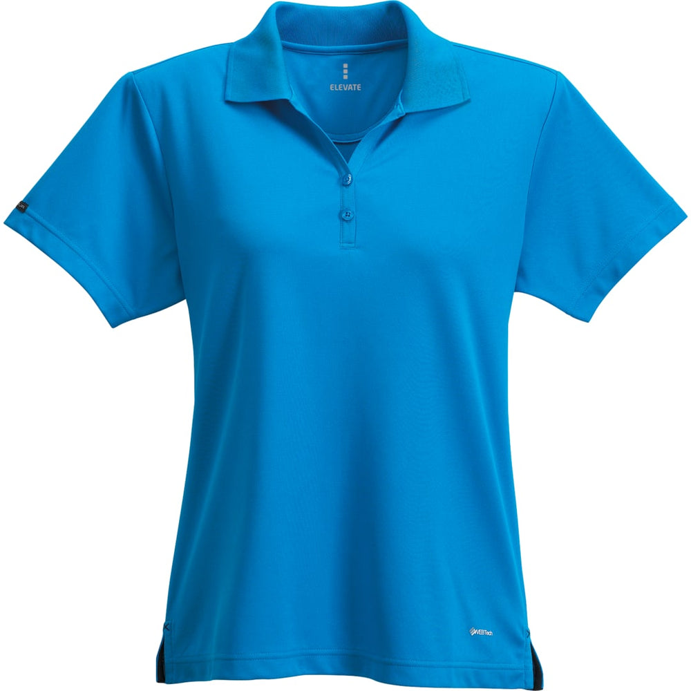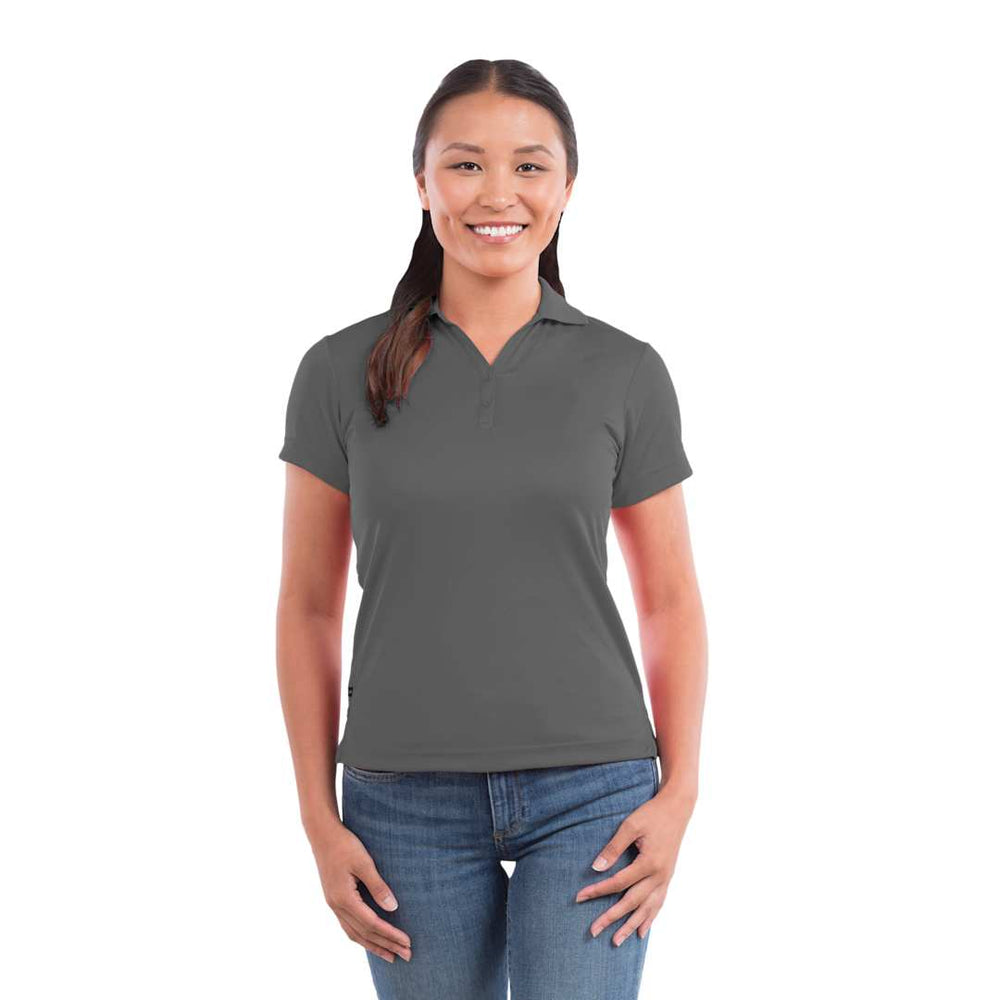 Advanced WEBTech; 100 wicking fabric offers breathable moisture management. Classic flat knit collar with long, slimming two-button placket (women's). Contrast 'X' shaped bartacks at slits and taping on inside of slits. Laser not available on White.