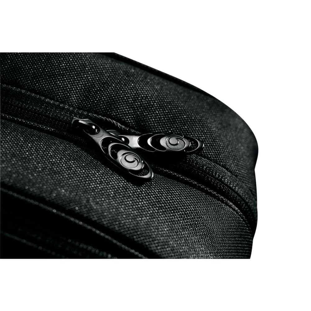 Laptop-only section unfolds lying flat on X-ray belt, expediting airport security. Holds most 15" laptops. Front compartment contains organization and file dividers. Front zippered pocket. Rear compartment with built-in laptop sleeve. Quick-access corner pocket. Rear trolley handle. Removable, adjustable shoulder strap. Two carry handles. Disclaimer: There may be minor variations in color of the actual product due to the nature of the fabric dyes, weaves and printing.