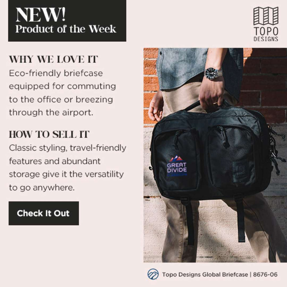 The Topo Briefcase is a great addition to any bag collection. The materials include 400D recycled nylon, 210D recycled nylon pack cloth liner, and 1680D recycled ballistic nylon base – making it equipped for commuting to work or your next outdoor adventure. It features a large main compartment, a laptop compartment, and a removable adjustable padded shoulder strap. Through a partnership with 1% For The Planet, one percent of sales of all EcoSmart® products are donated to environmental nonprofits.