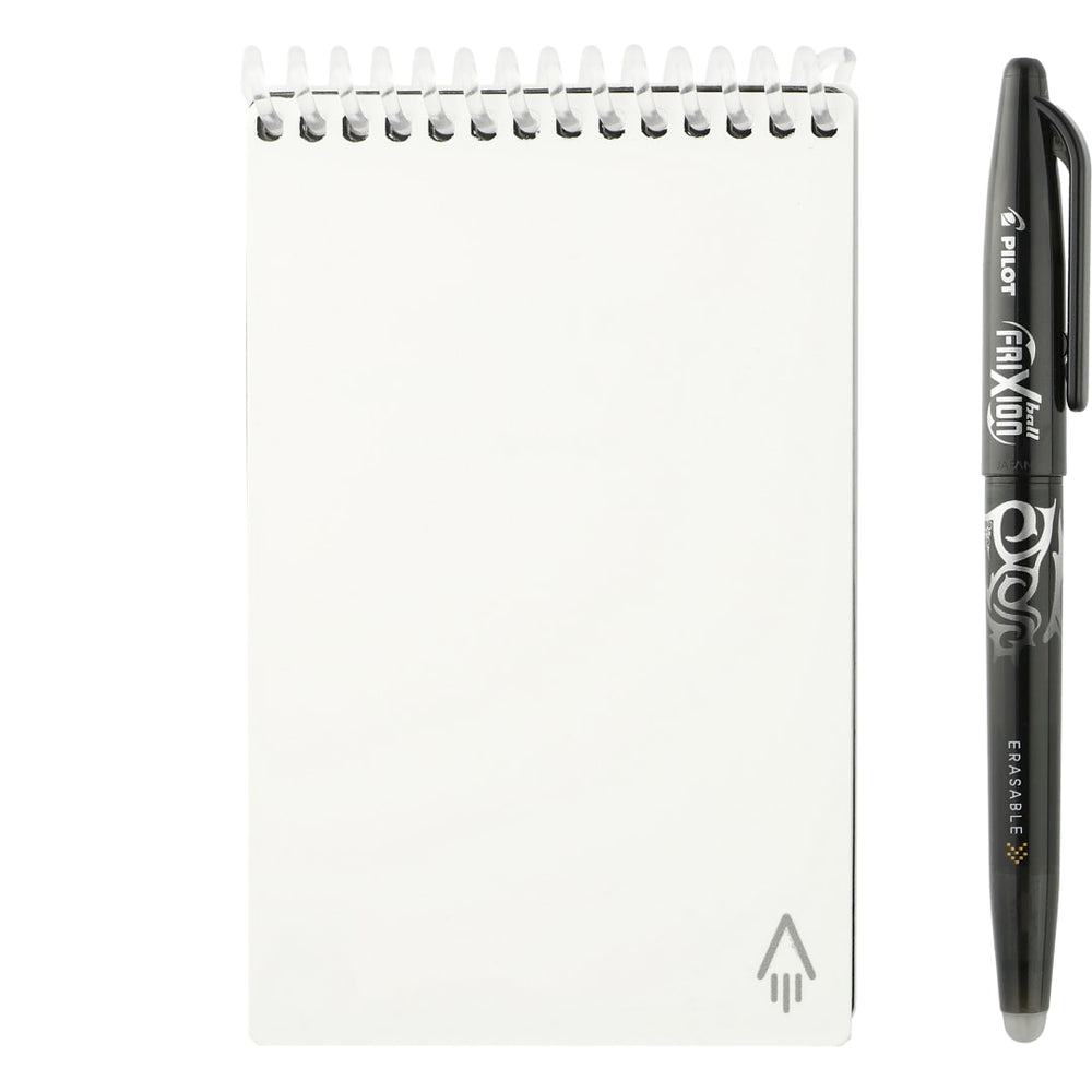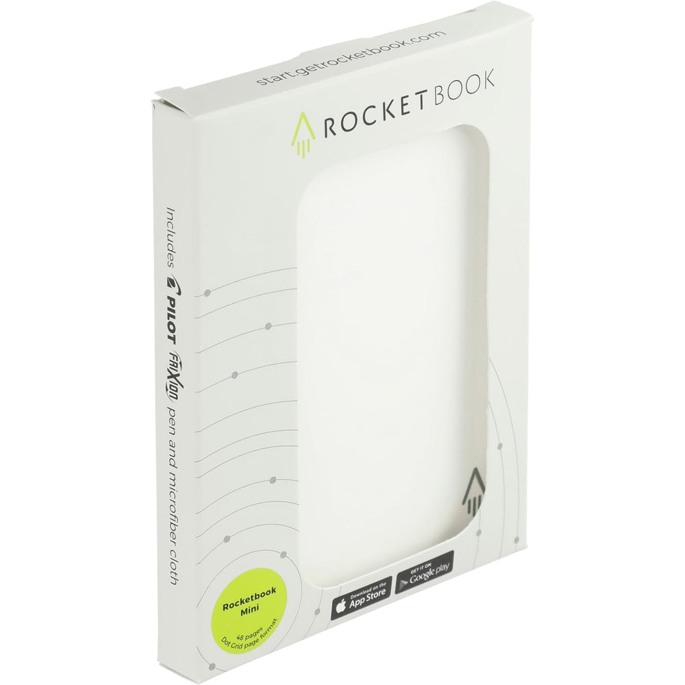 The Rocketbook Mini Notebook is designed for every classroom, office, and personal mission. The synthetic dotted paper allows you to write smoothly with a Pilot Frixion pen, then magically wipe clean with the included microfiber cloth when damp to reuse again and again! Use the Rocketbook app to blast your notes, plans, lists, and big ideas to your favorite cloud service for proper organization. Then, erase and reuse your Flip for your next adventure. This hard cover notebook contains 48 pages. Premium retail gift box.