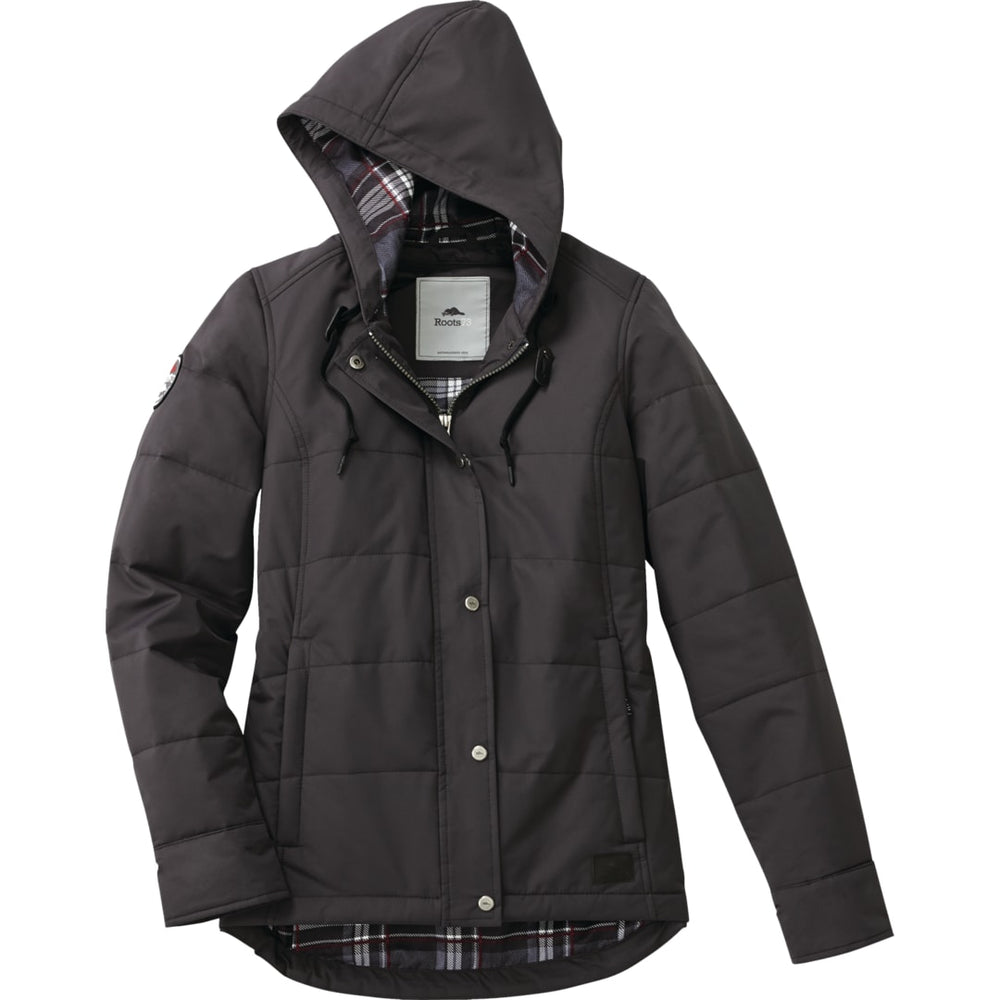The Gravenhurst Insulated Jacket is a stunningly stylish look for late fall and early spring, providing you with lightweight warmth. In addition to a breathable, waterproof membrane for protection from the elements, the comfy Gravenhurst features exquisite styling, starting with horizontal channel quilting and a snap center placket concealing a zipper with a mitten-friendly zipper pull. No detail on the Gravenhurst has been overlooked, from the faux leather drawstring grab on the attached hood to the brushed plaid lining and elastic hem drawcord. With Roots73 branding to complete the look, the Gravenhurst is certain to command attention for any brand.