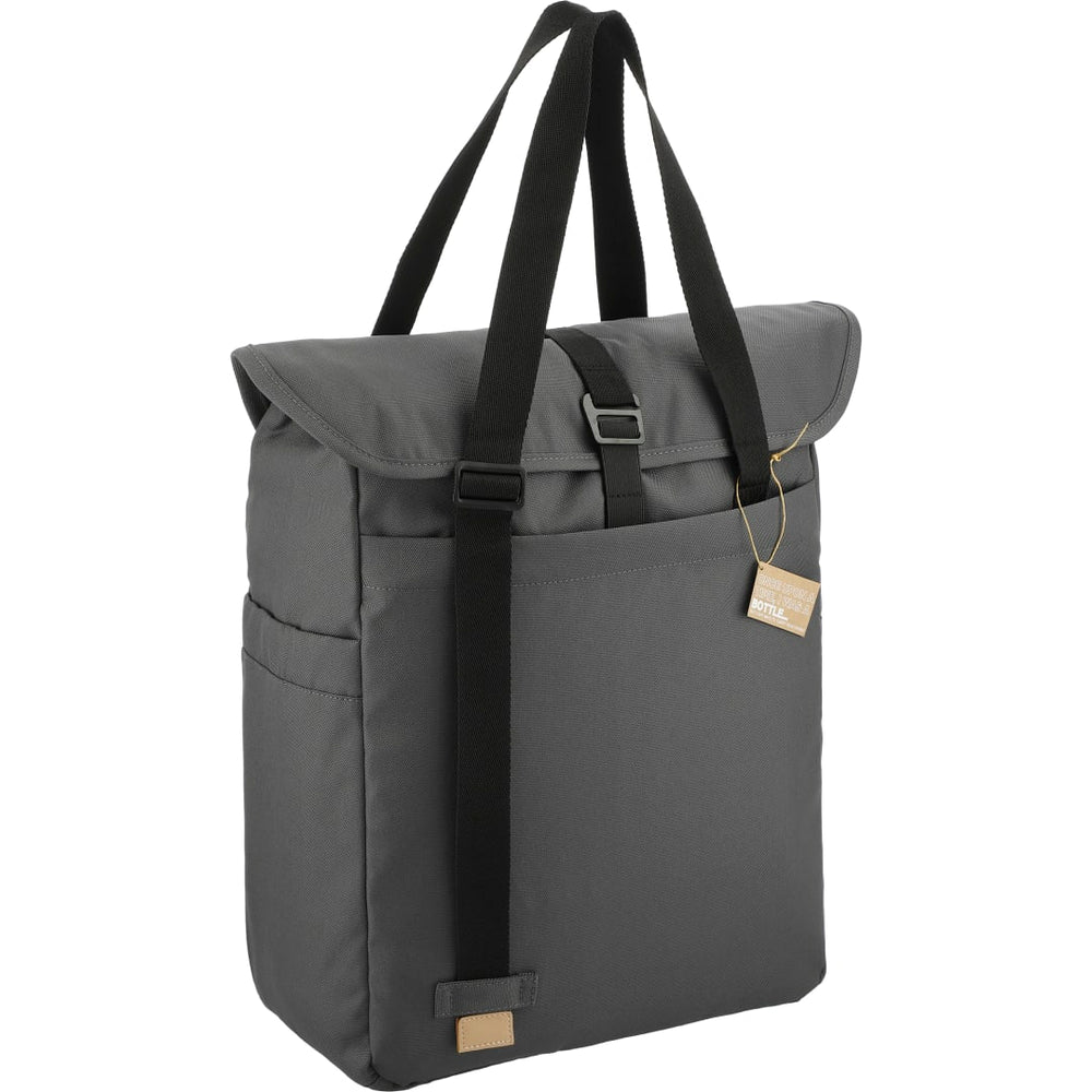 The Aft Recycled Computer Tote is made from eco-friendly RPET, so you can feel as good as you look while carrying it. Keep your essentials in the front zippered pocket and store your reusable water bottle in either of the side pockets. The main compartment features a padded 15" computer sleeve as well as a smaller padded sleeve for your tablet. Adjustable carry straps let you find the perfect length, and the easy-to-use G-hook secures the flap over the main compartment. Through a partnership with 1% For The Planet, one percent of sales of all EcoSmart® products are donated to environmental.