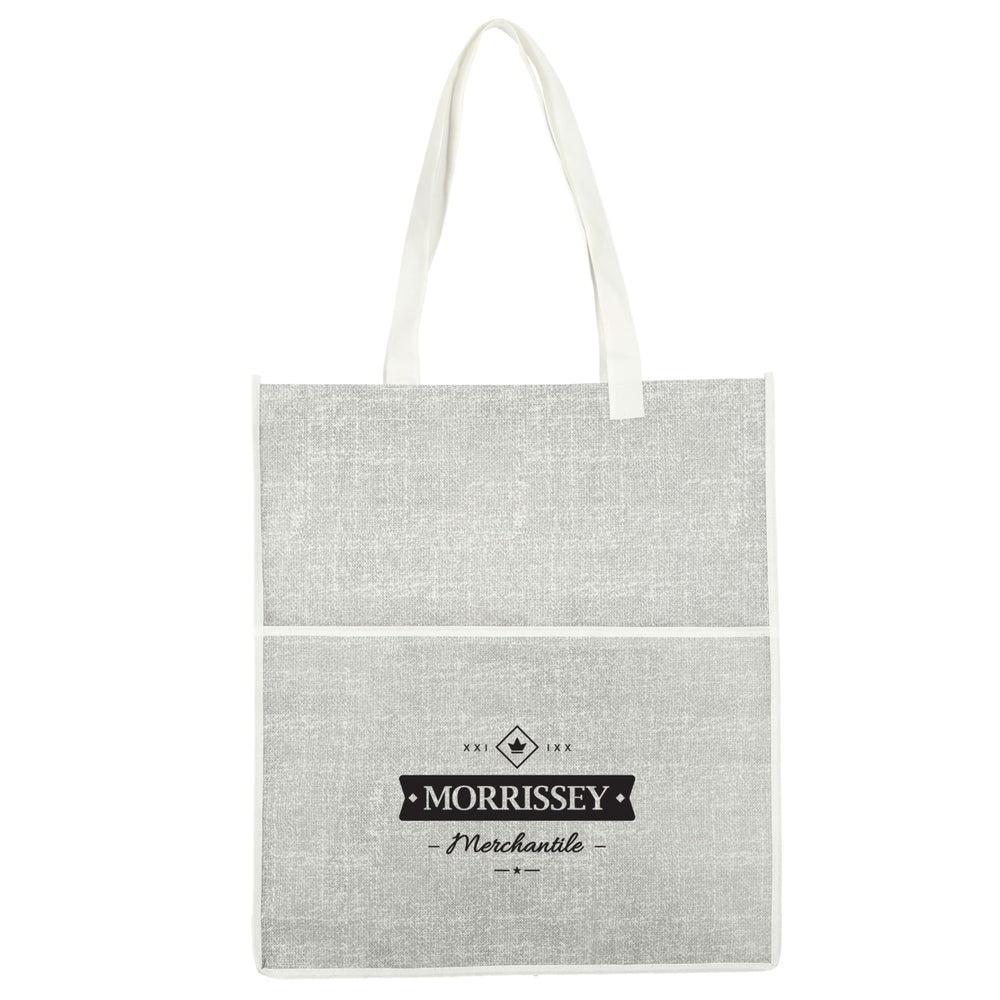 Embrace the natural charm of the Apollo Recycled Non-Woven Convention Tote, a unique take on non-woven bags. This large tote, adorned with a natural print, is perfect for carrying all your essentials. Boasting a spacious open compartment and an additional front pocket for extra storage, this versatile tote is designed to meet all your needs.